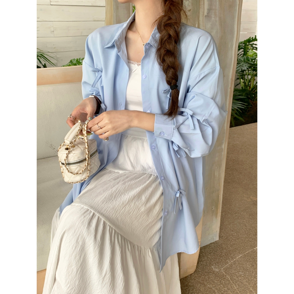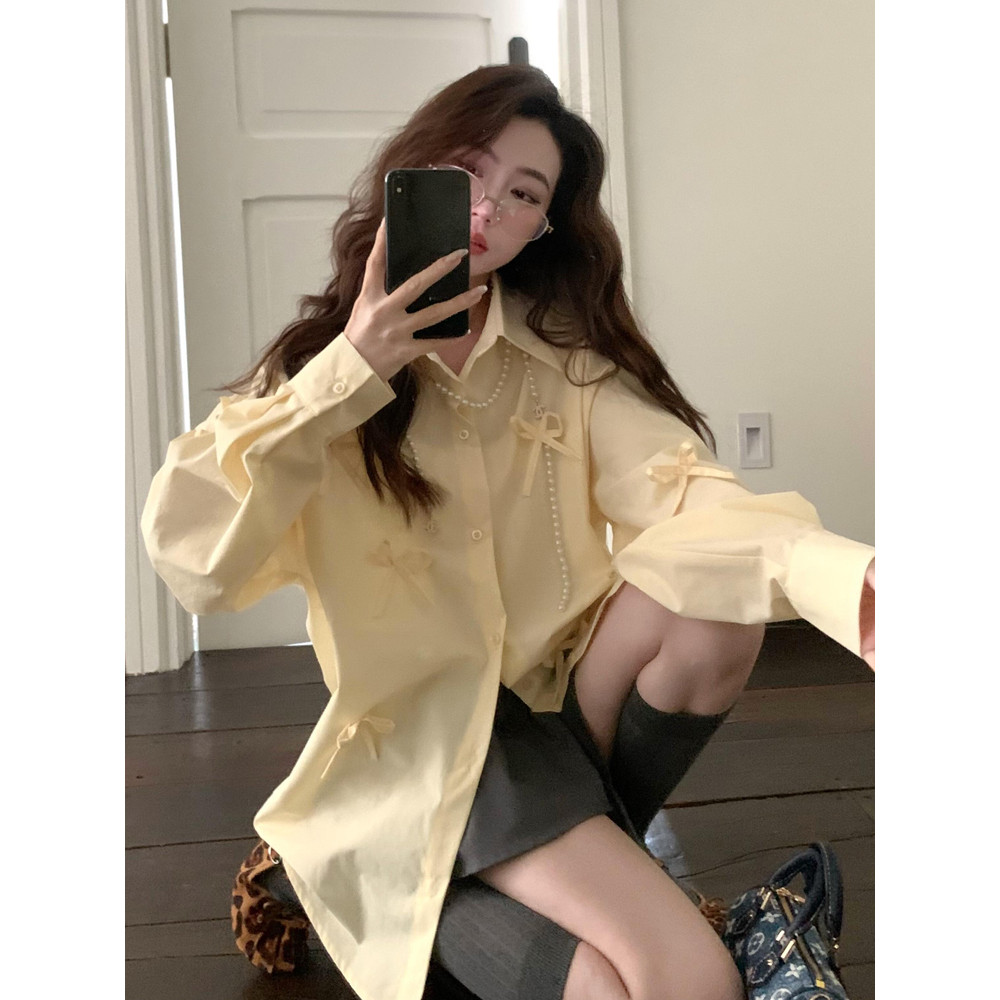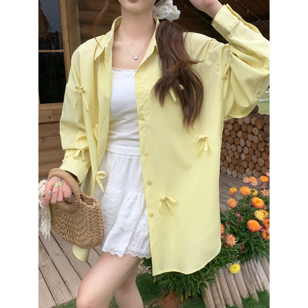 Spring New Gentle Yellow Women's Bow Knot Shirts 250326
