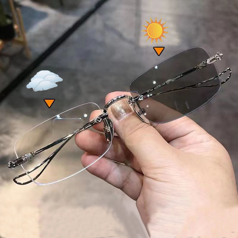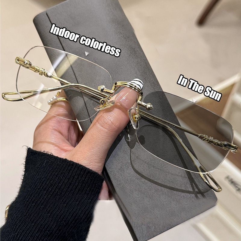 Square Fashion Photochromic Glasses Small Frame High-End Anti-Blue Light Glasses Retro Frameless Eyeglasses Cermin Mata