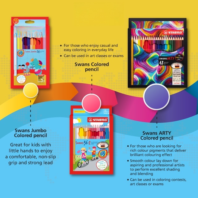 STABILO Swans ARTY Colour Pencil/Pensel Warna School Kids Stationery Set Home Stationery For Children (12/24/36/48)
