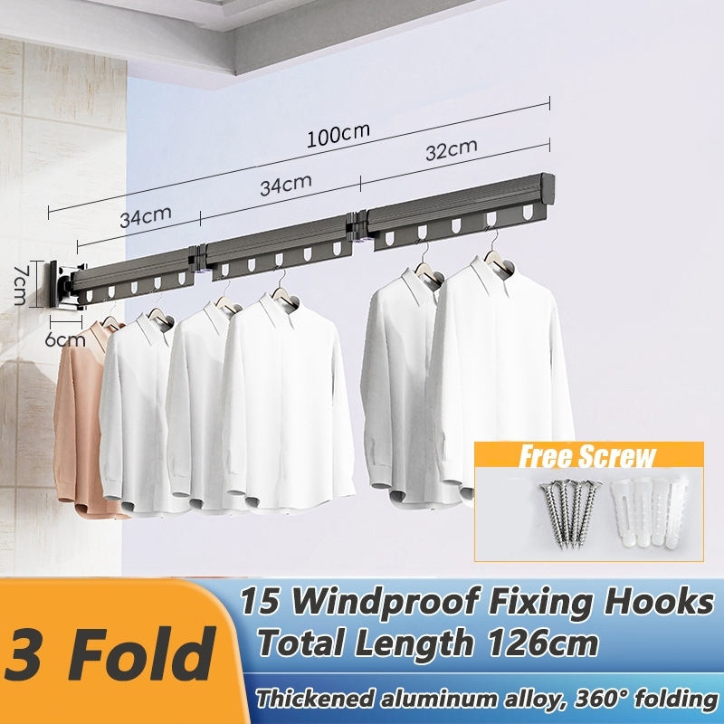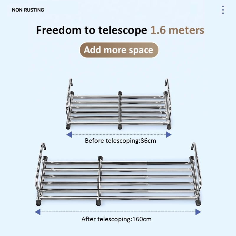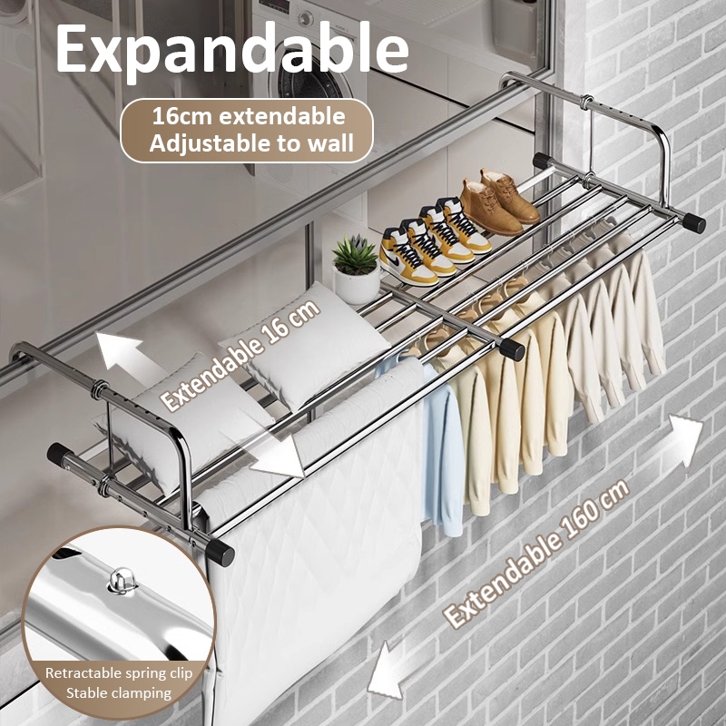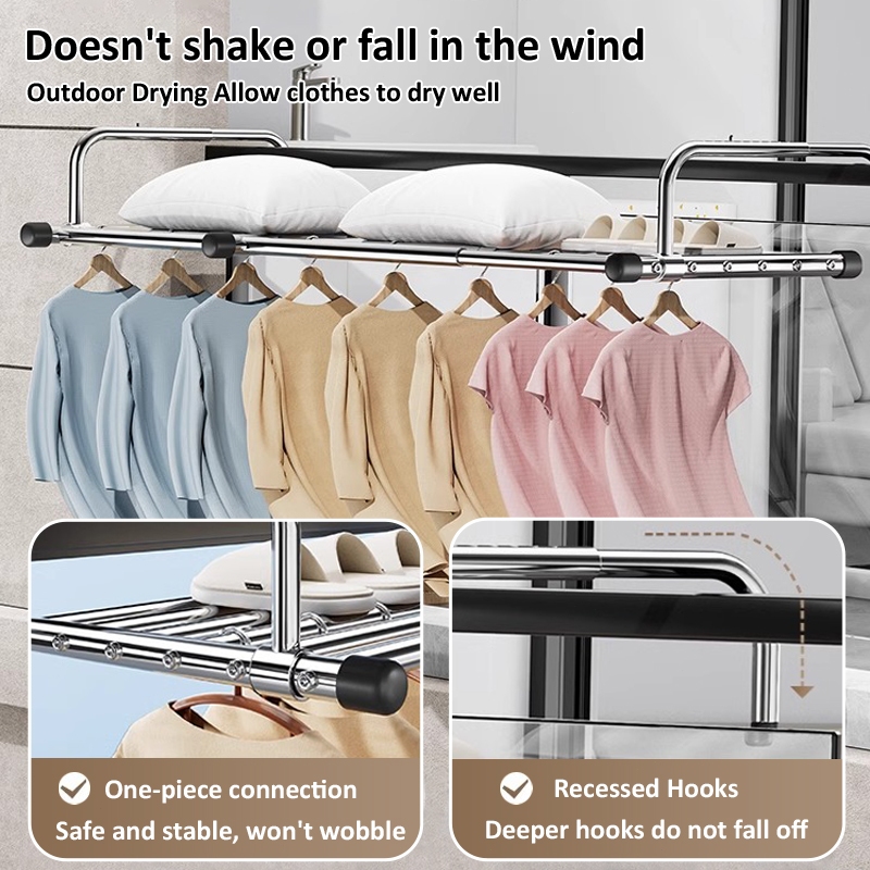 Stainless Steel Foldable Towel Hanger Extendable Balcony Clothes Hanger Indoor Outdoor Cloth Drying Rack 晾衣架