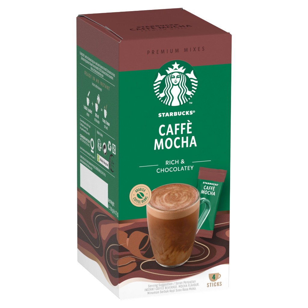 STARBUCKS Premium Coffee Mixes Caffè Mocha, Coffee Mix Sticks 56g Box of 4 x 22g
