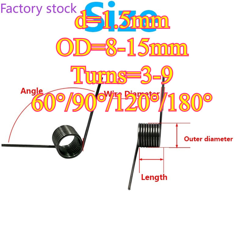 steel spiral torsion V-shaped spiral torsion spring 5pcs d1.5mm OD8/10/12/14/15/16/18/20mm (HA-XDT-MY-1)