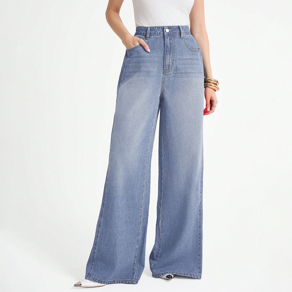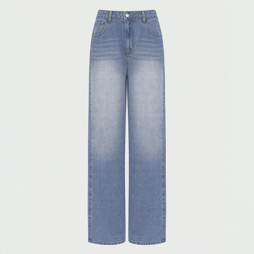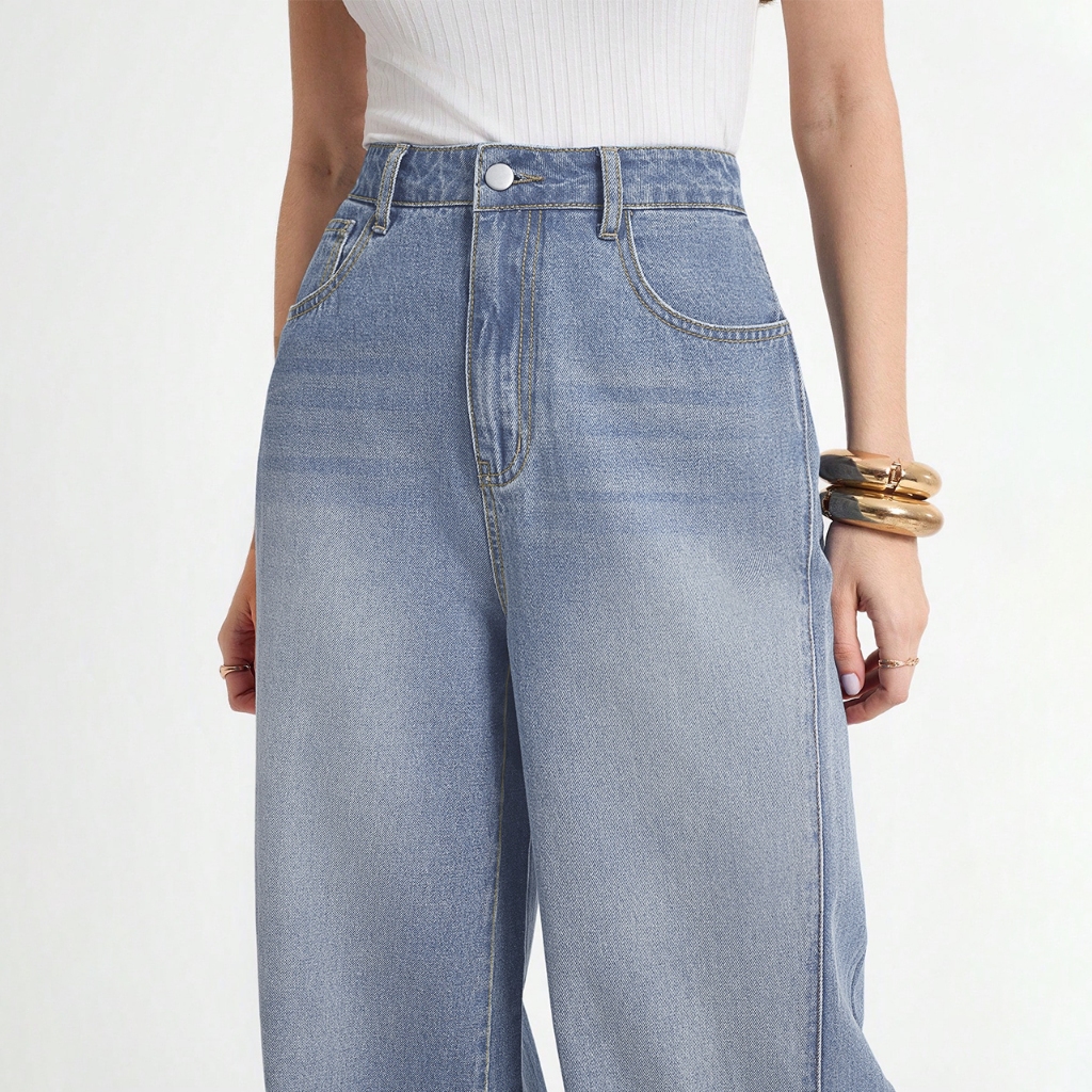 Straight Cut Jeans Plus Size High Waist Fashion Korean Style Wanita Denim Baggy Jeans Outfits