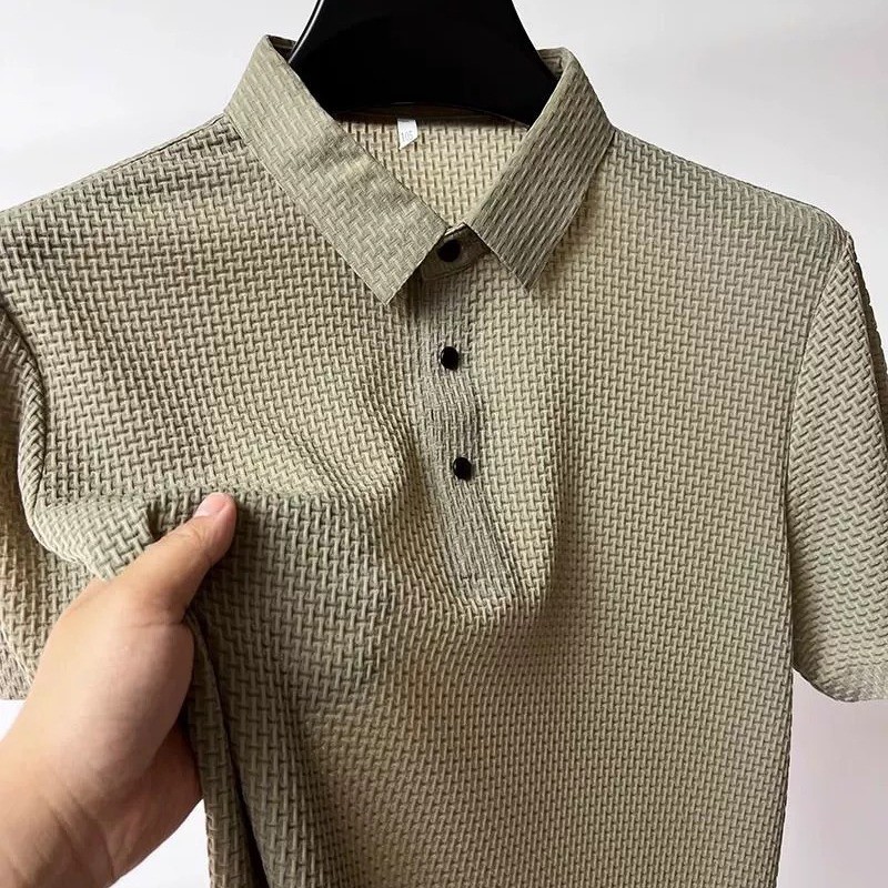 Street Wear Ice Silk Short-Sleeved Business POLO Shirt Men's New Style Summer Thin Mesh Breathable Lapel Top Large Size