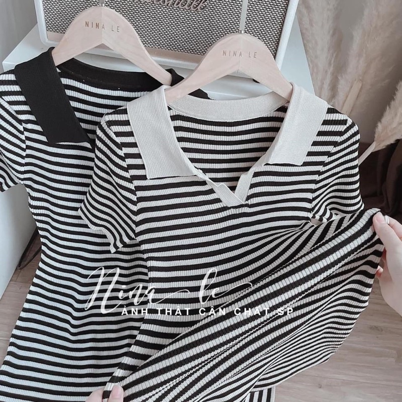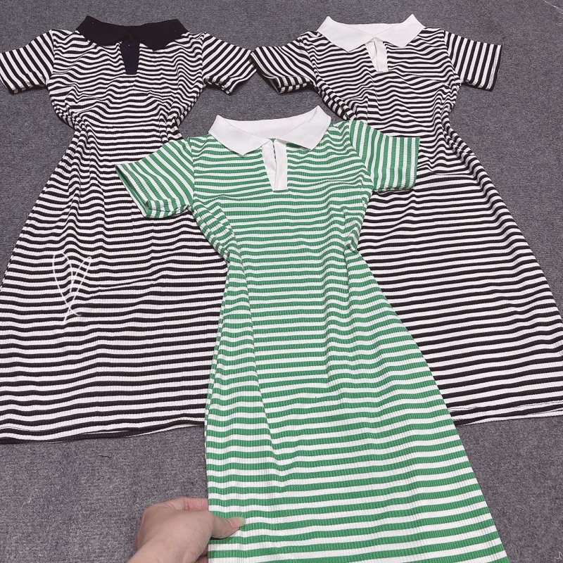 Striped bodycon dress with turn-down collar, REAL PHOTOS INCLUDED