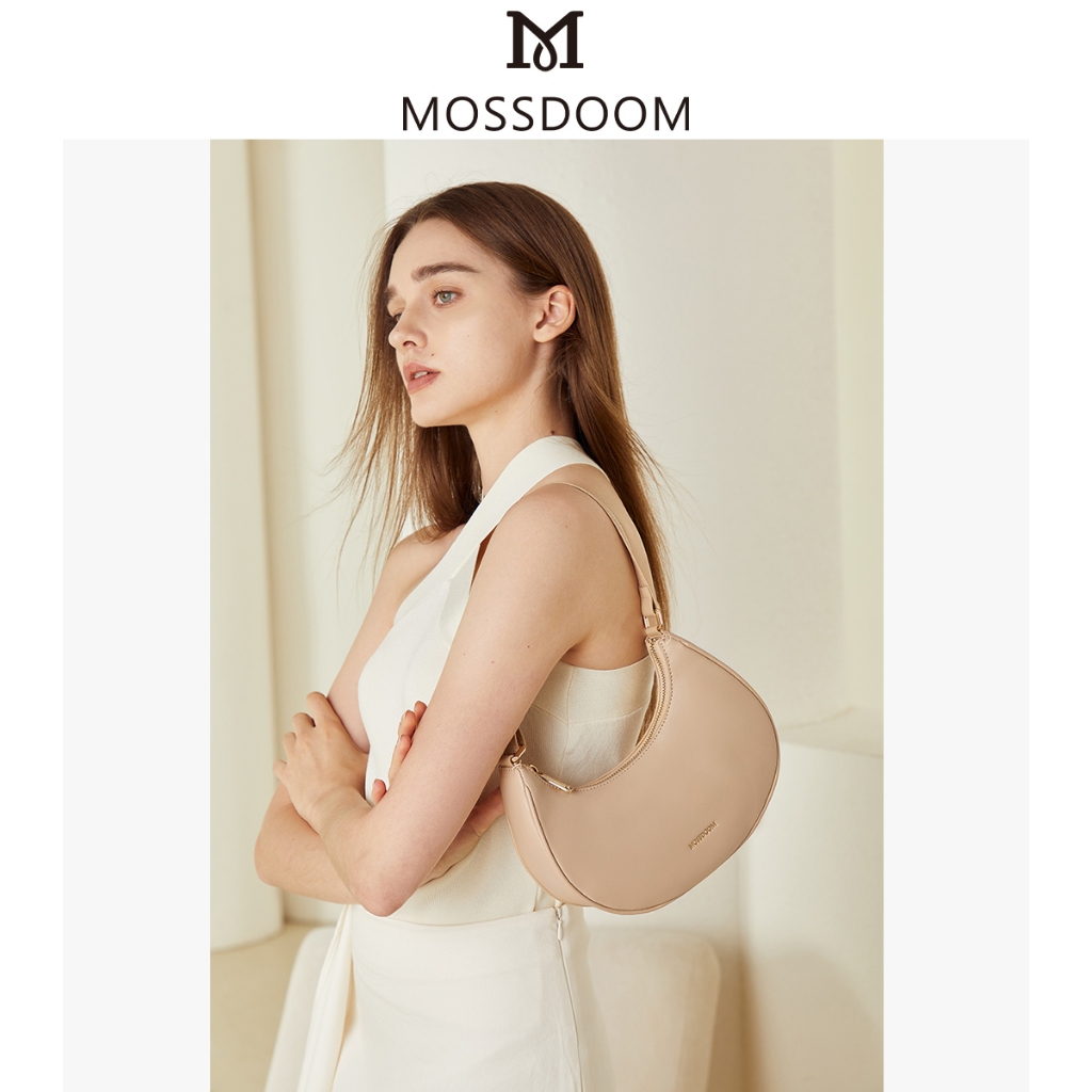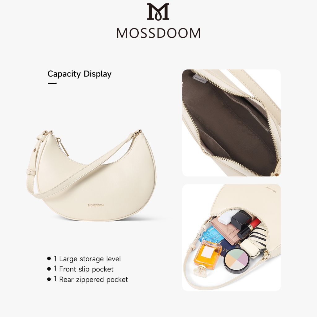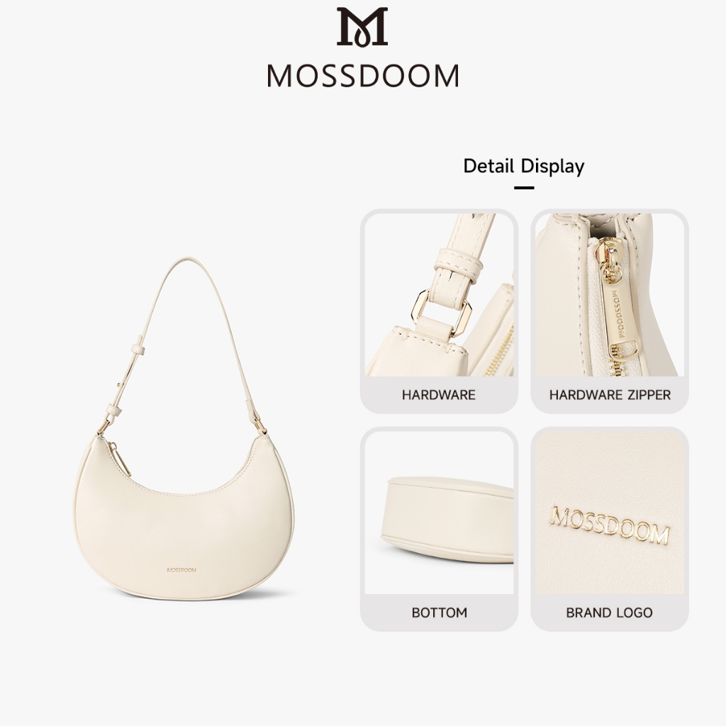 Stylish Women's Shoulder Bag by MOSSDOOM in Apricot or White with PU Leather and Adjustable Strap