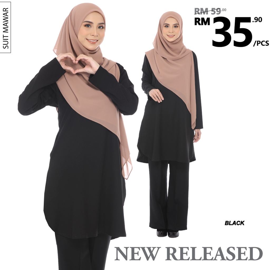 Suit Muslimah Mawar Berkualiti. Suit Labuh