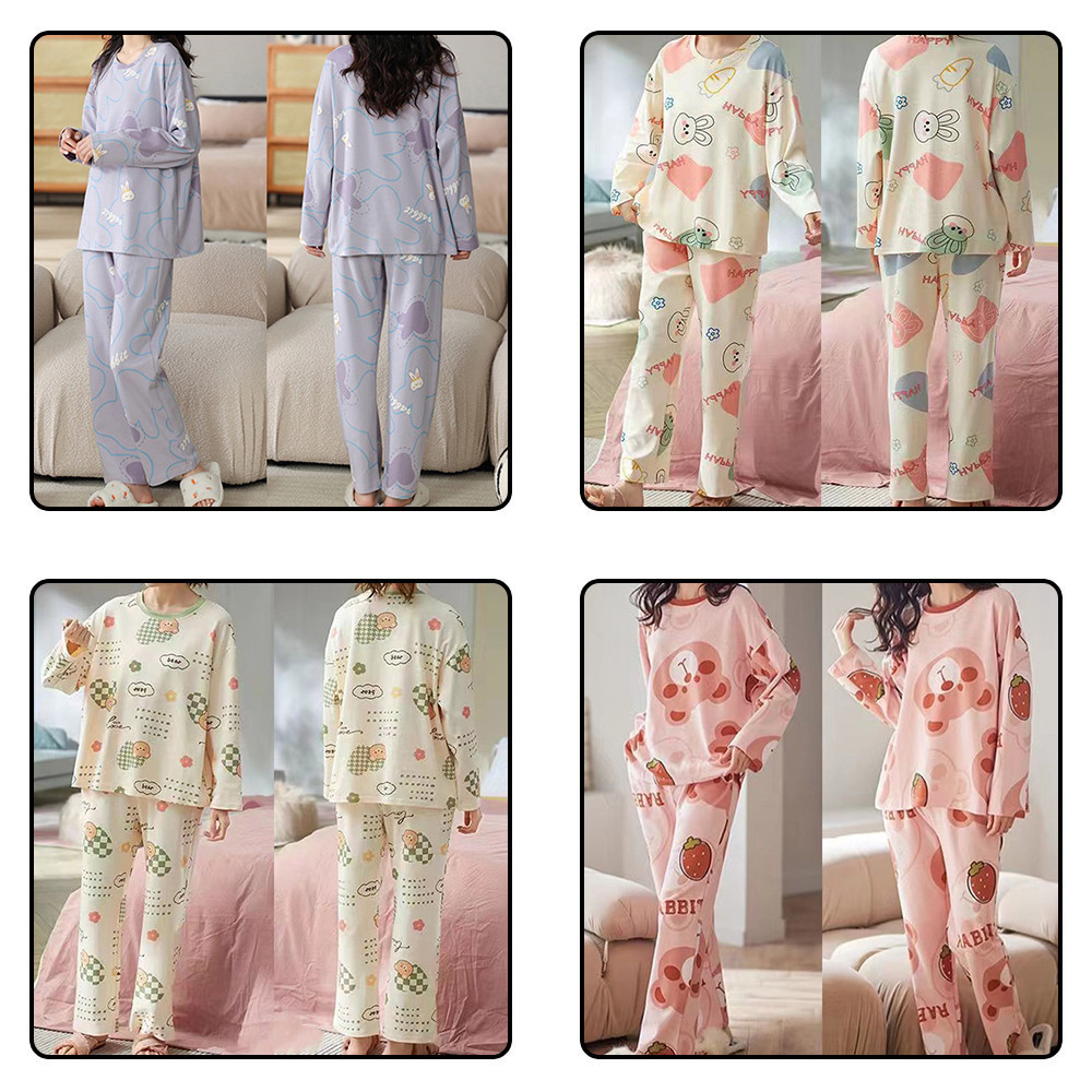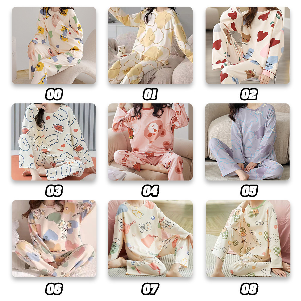 SUMIKO Pyjamas Women Sleepwear Long Sleeve Combo Long Pants Baju Tidur Wanita Pajamas Panjang 长袖长裤睡觉衣女