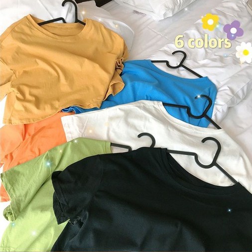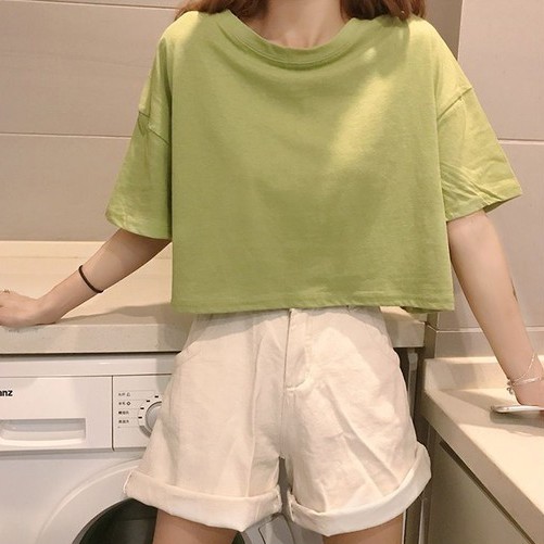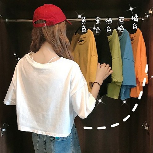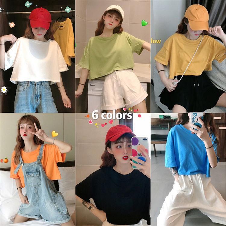 summer new fashion crop top shirt loose korean casual plain t shirt women oversize baju wanita lengan pendek comfortable