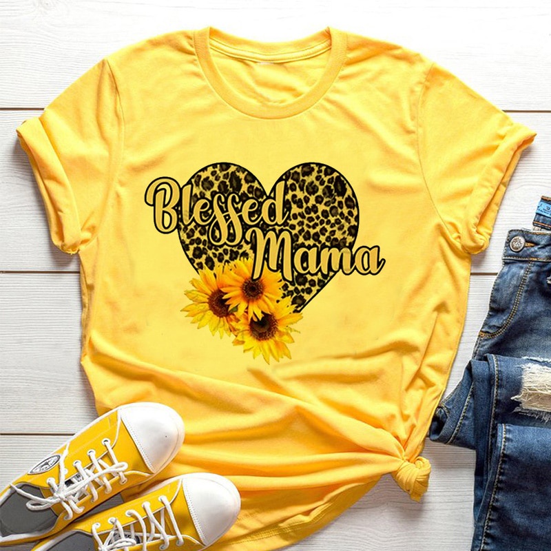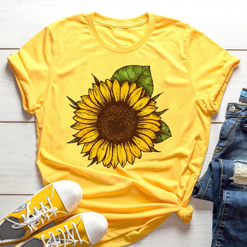 Sunflower Bee Kind Yellow Women T-shirt Aesthetics Graphic Short Sleeve Cotton Polyester T Shirts Female Camisetas Verano Mujer