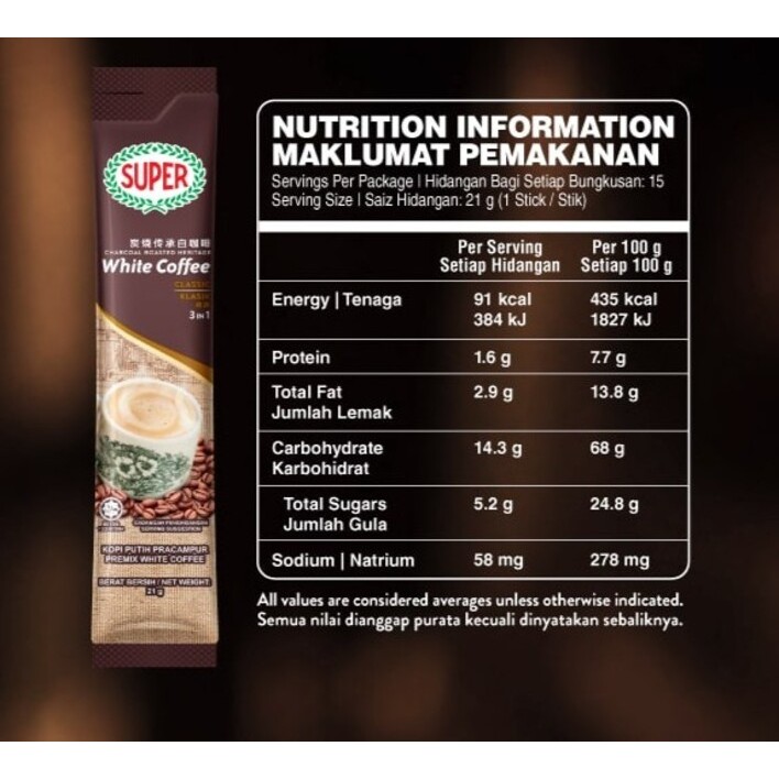 SUPER CHARCOAL ROASTED HERITAGE WHITE COFFEE 15 SACHETS