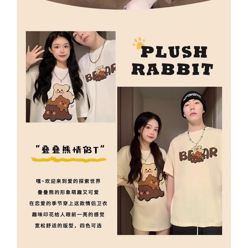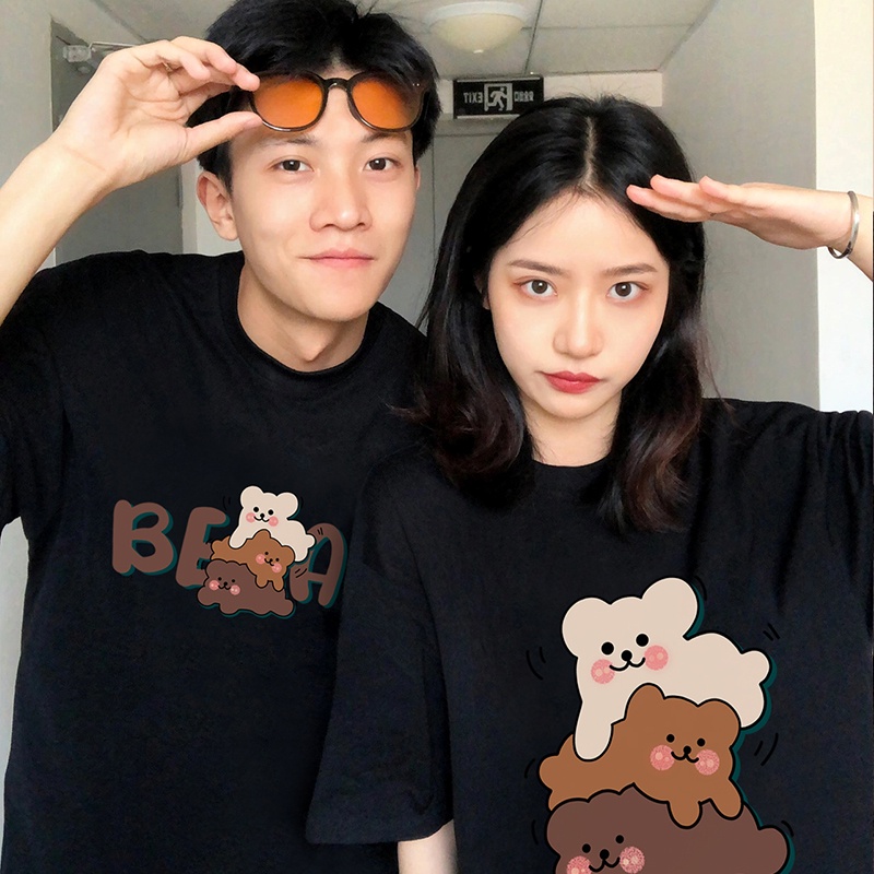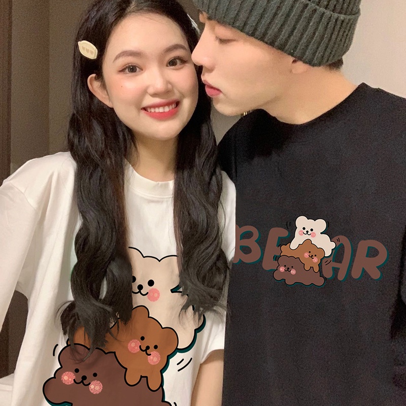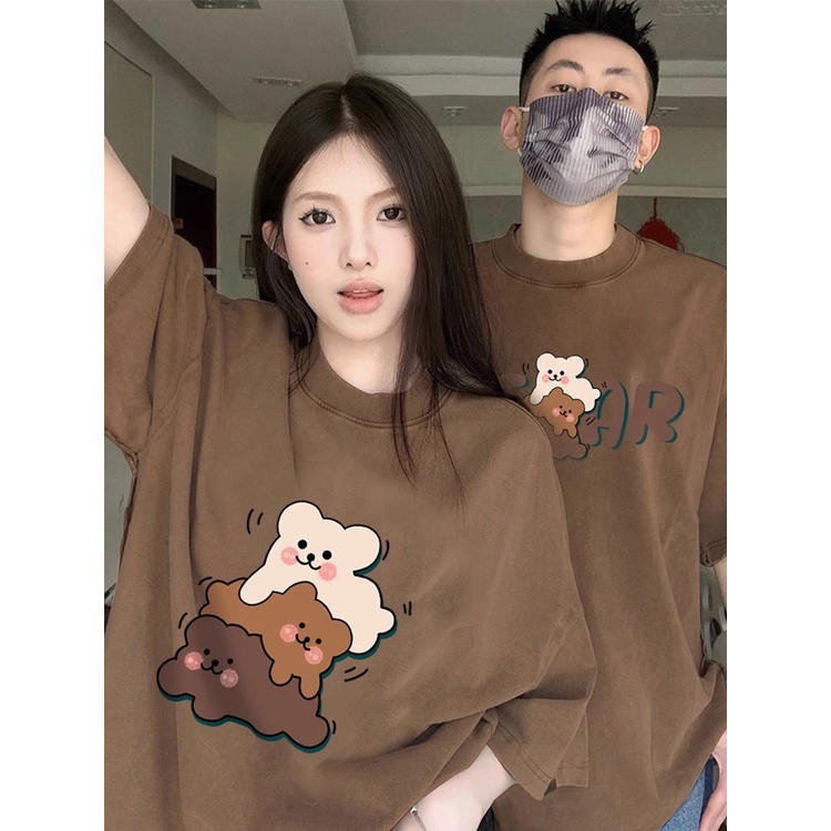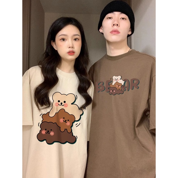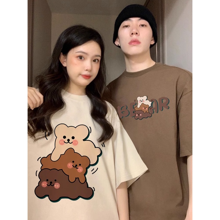 Super Cute Cartoon Printed Couple Korean Sweet Style Oversize Loose Summer Short Sleeved T-shirt