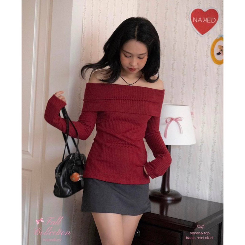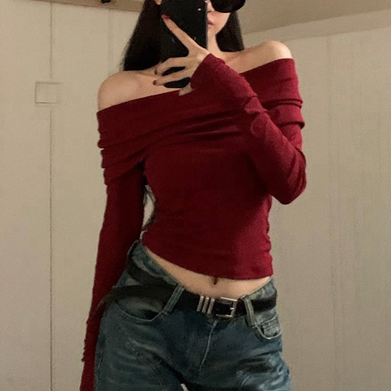 SUPER HOT FLAT SHOULDER STYLE DRESS IN SEXY RED LONG SLEEVES W77