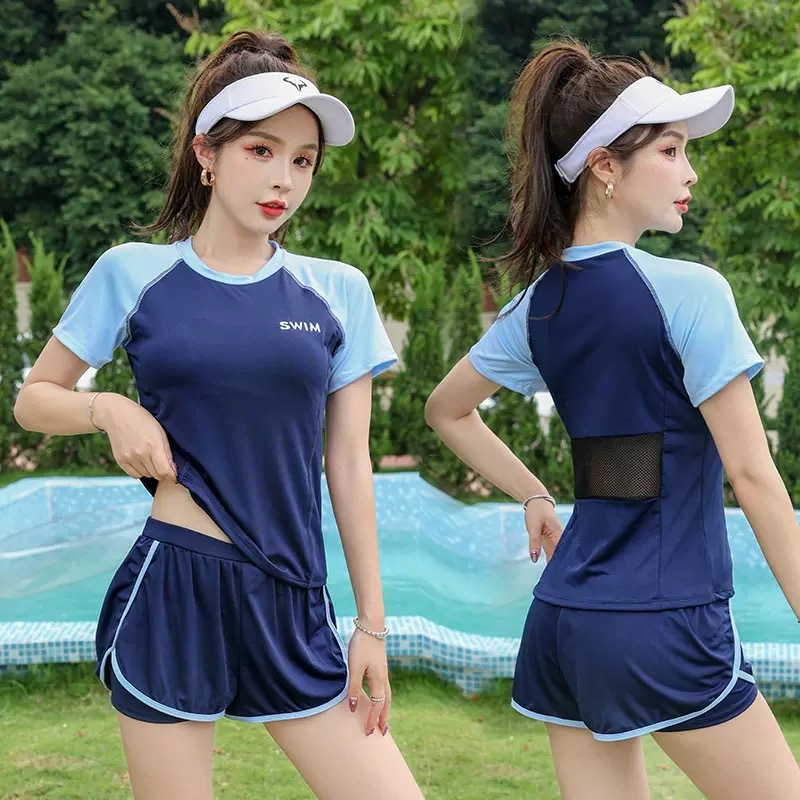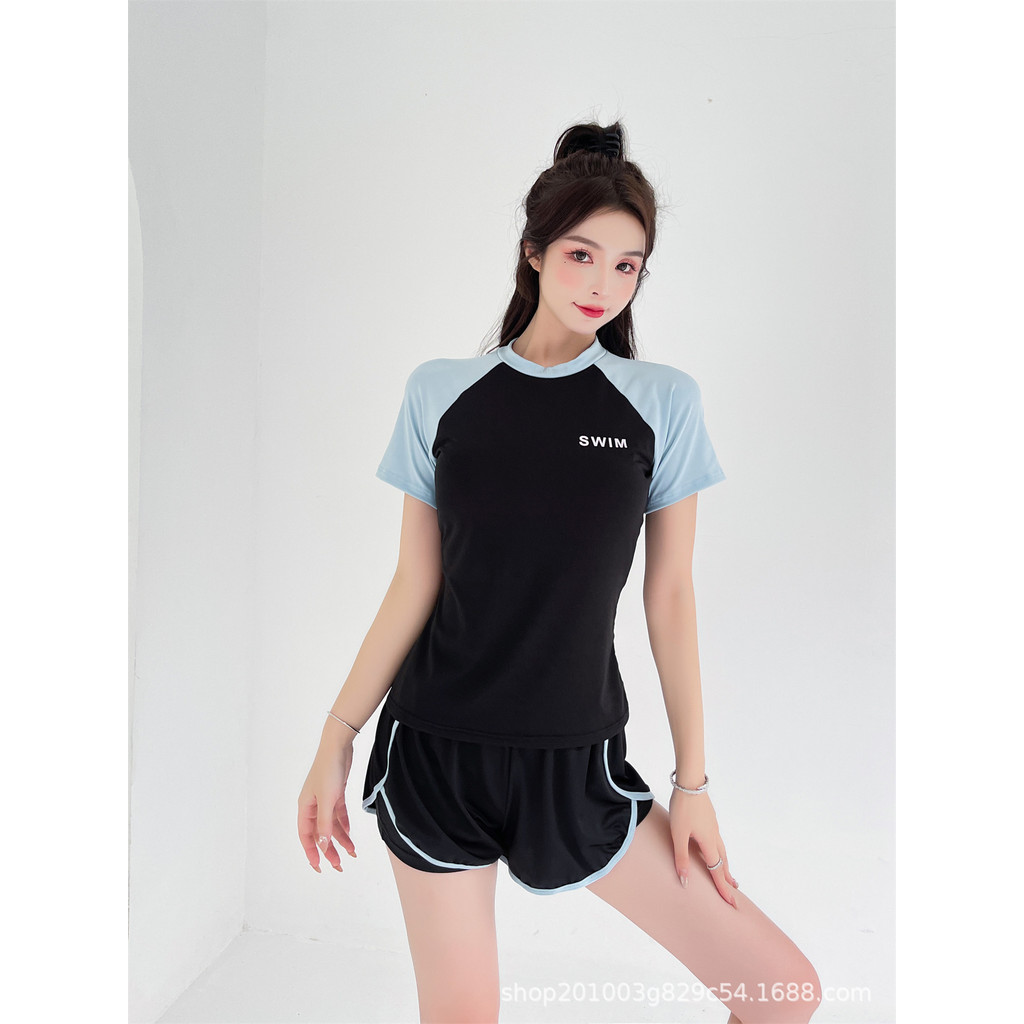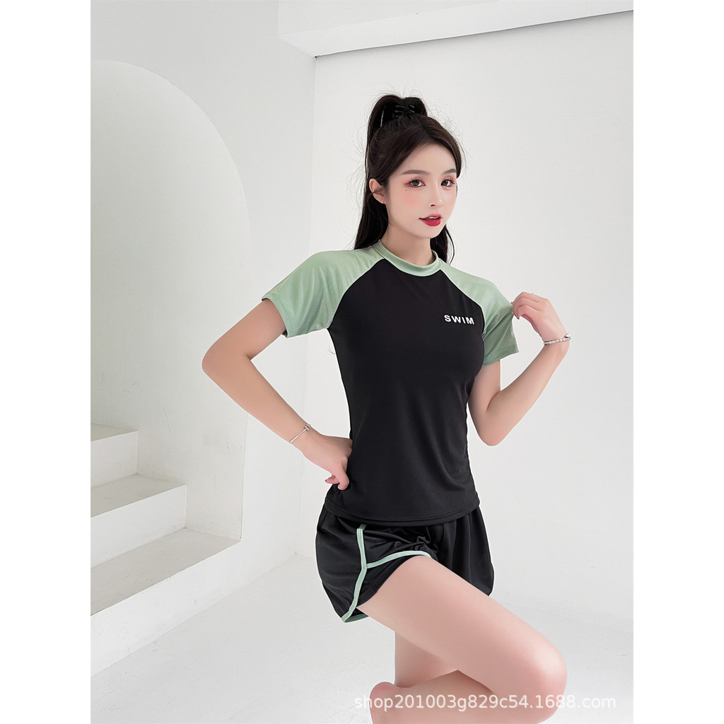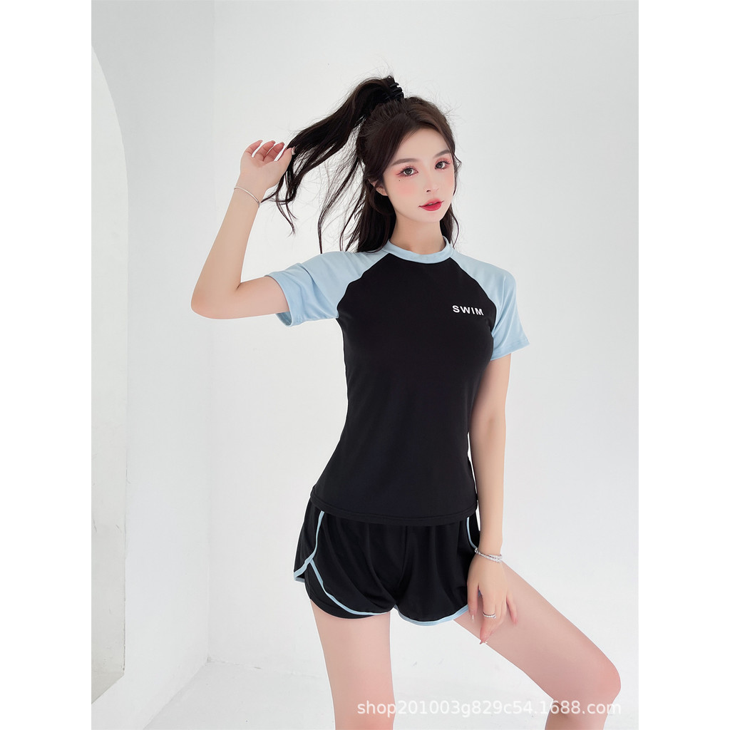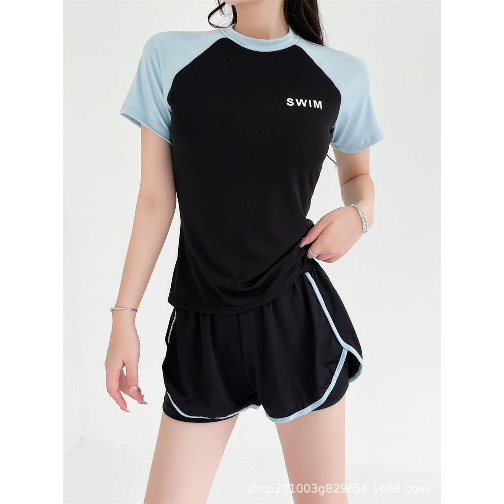 Swimsuit Female Split Sports Style 2024 New Style Fashion Slimmer Look Cover Belly Conservative Swimming Pool Running Short-Sleeved S