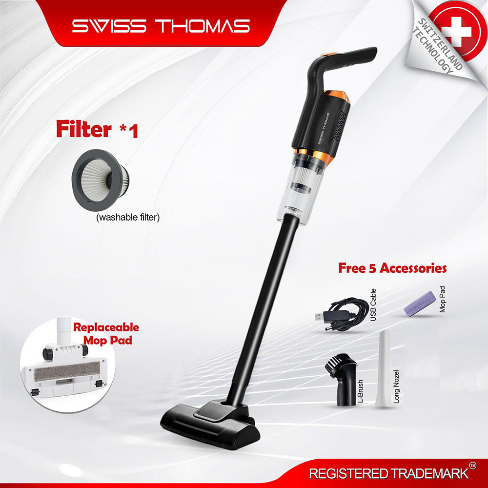 Swiss Thomas Cordless Handheld Vacuum Cleaner with Mop Pad – Rechargeable for Car & Home Use