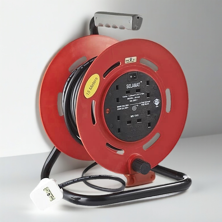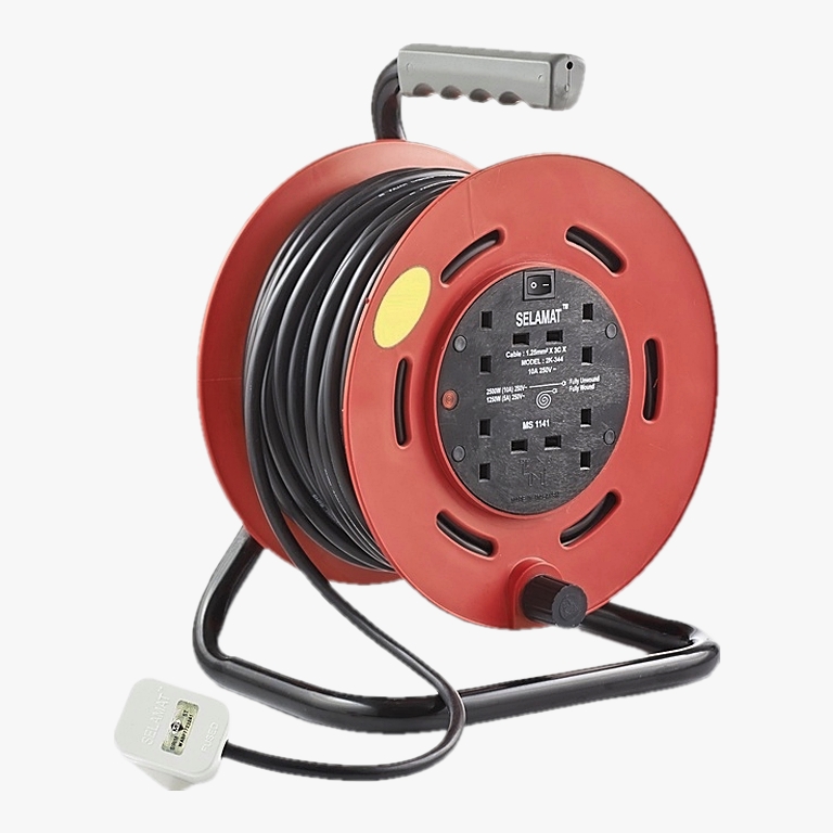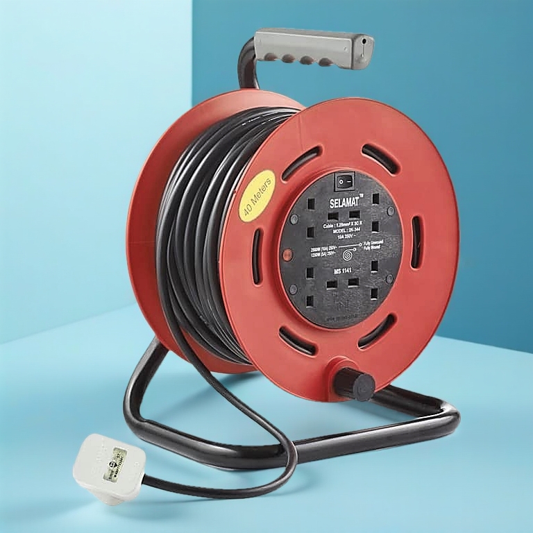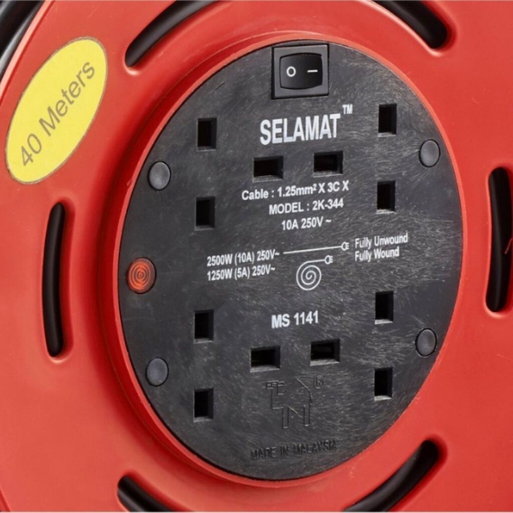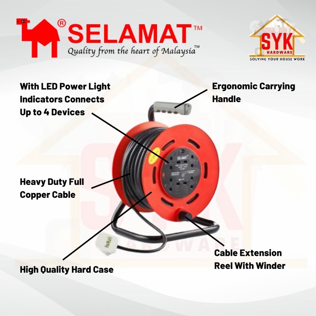 SYK SELAMAT 4-Gang 40-Meter Portable Extension Cable Reel – Heavy Duty Extension Cord with Plug