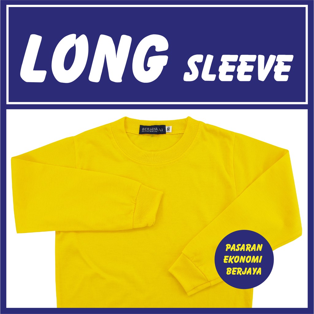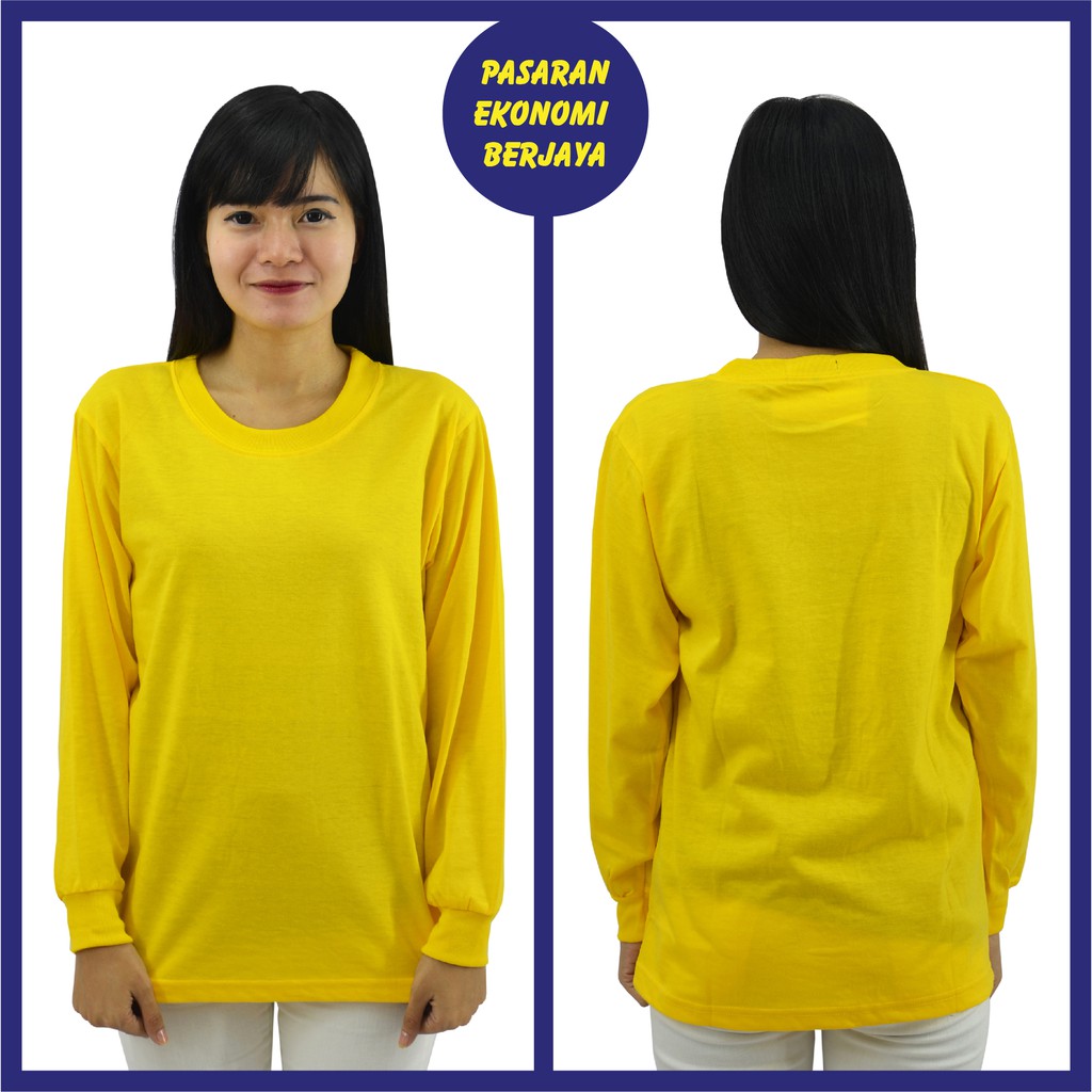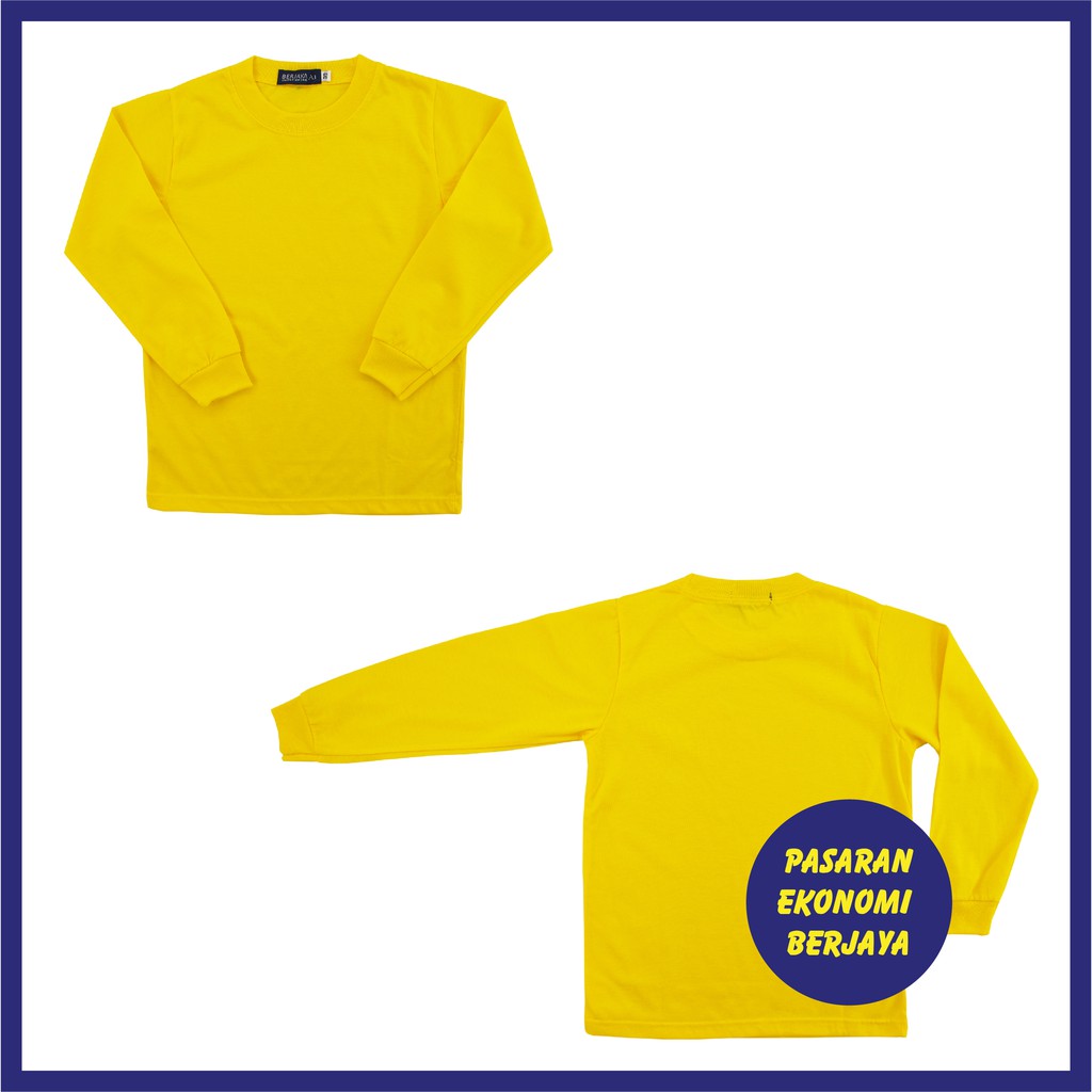 T-SHIRT SUKAN LENGAN PANJANG KUNING/ YELLOW COTTON T-SHIRT/ ROUND NECK/ PLAIN BASIC TEE/ TSHIRT KOSONG
