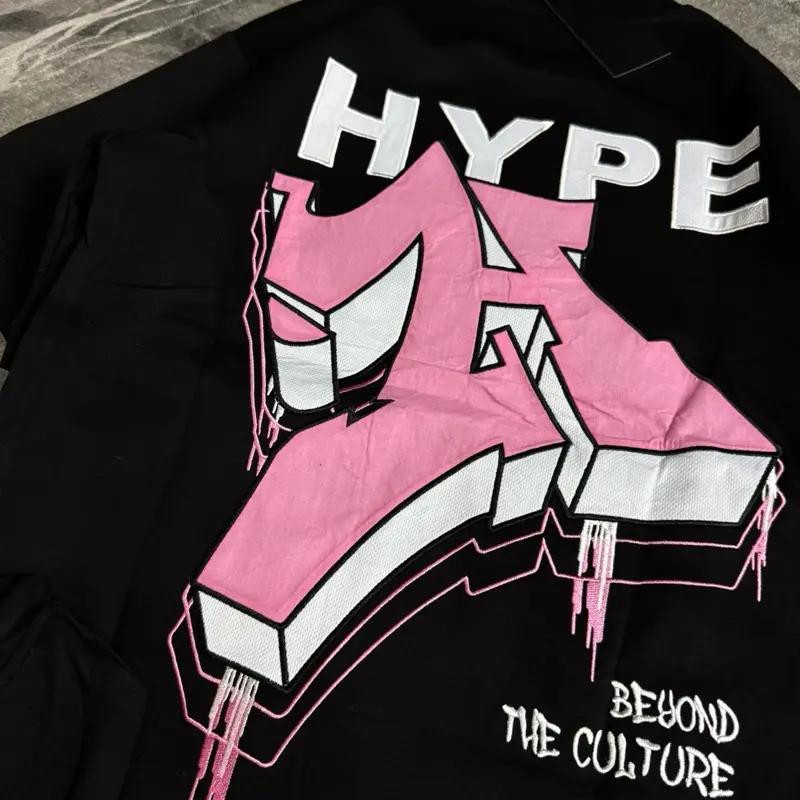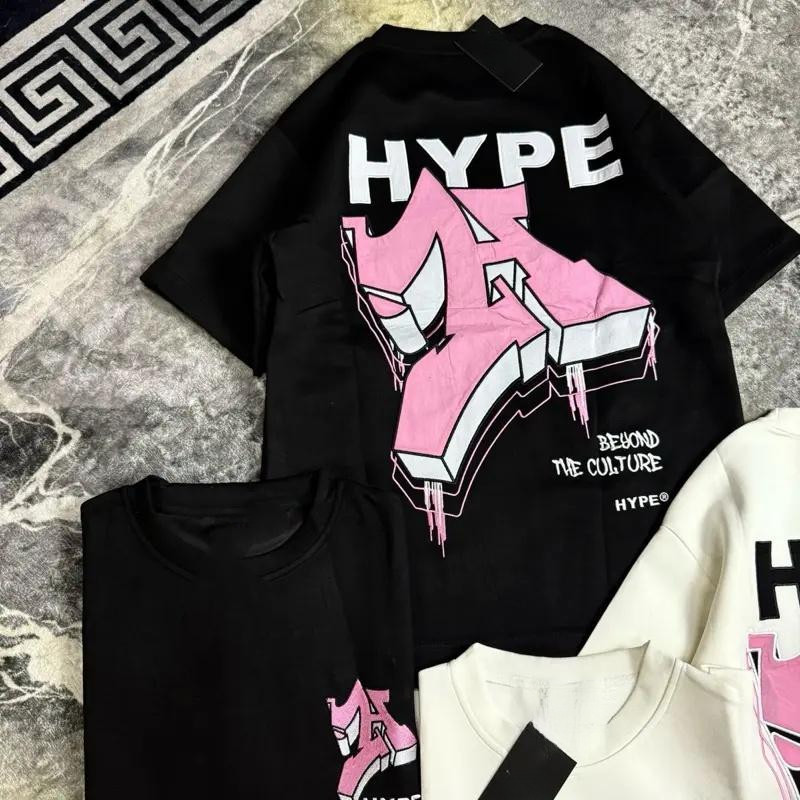 T-shirt untuk lelaki dan wanita,Logo HYPE PINK, uniseks, sesuai untuk semua musim, vintaj
