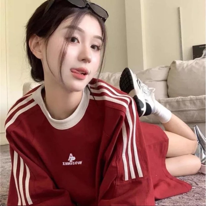 T-shirt with AP hand-embroidered striped neckline made of light, cool cotton