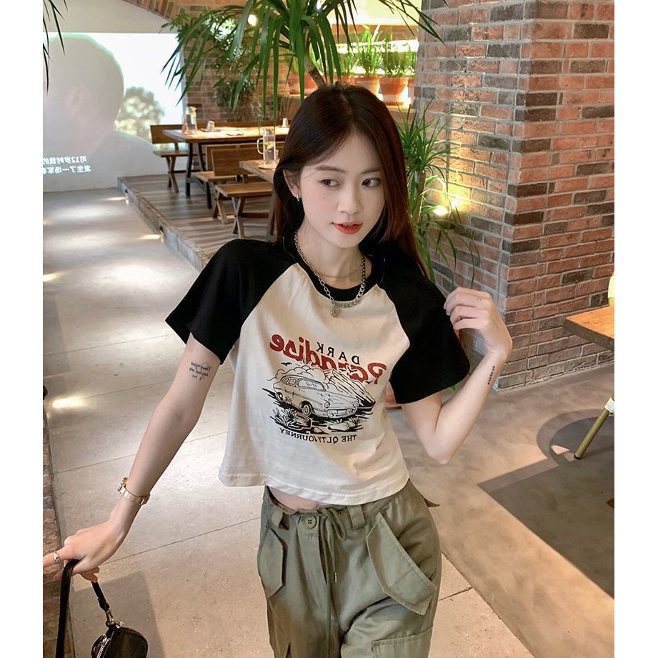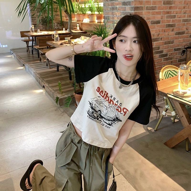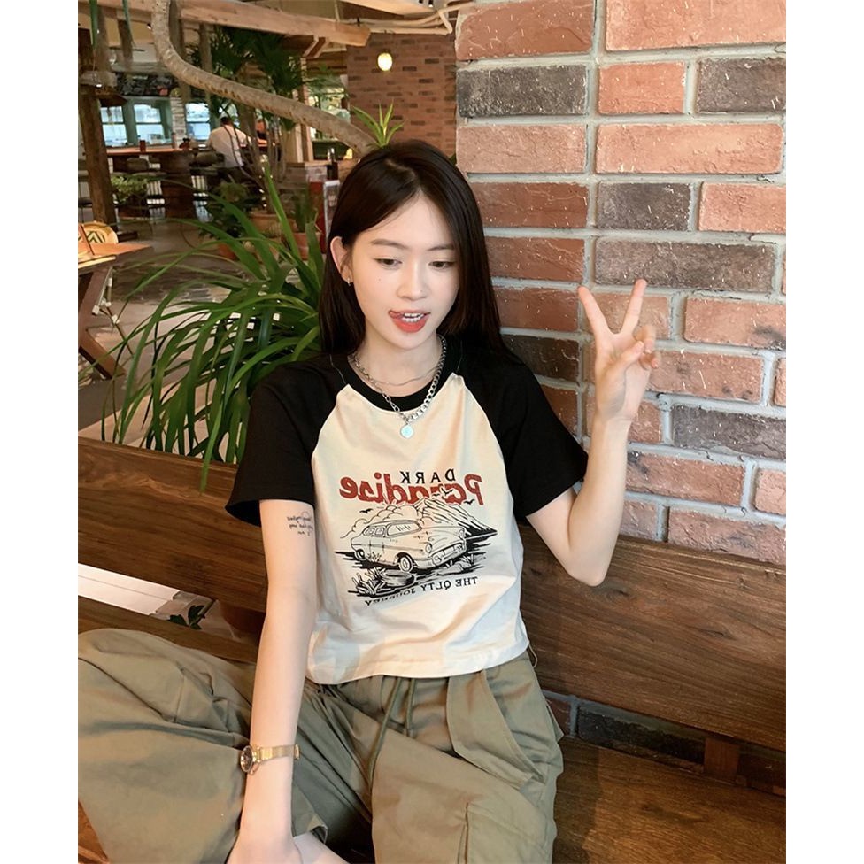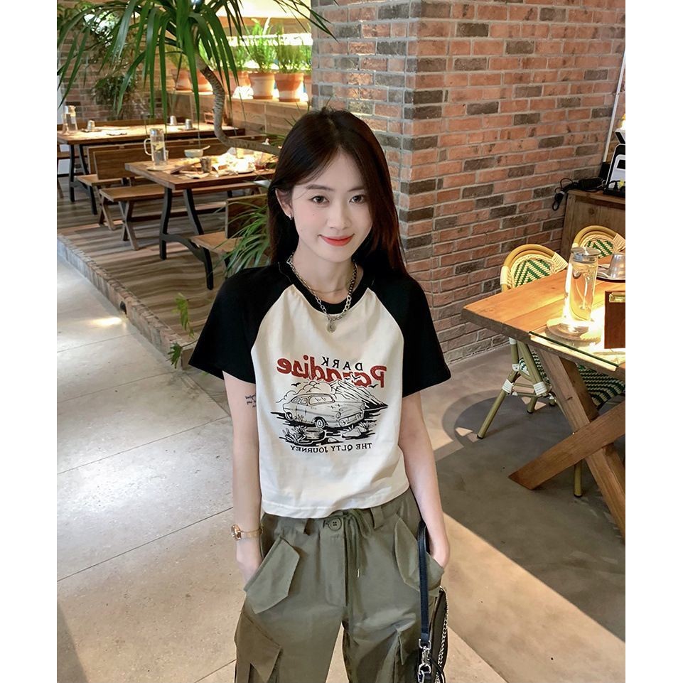 印花 短袖t恤女 Slim fit versatile short top for women ins tide 美式复古印花短袖T恤女2025夏季韩版新款修身百搭短款学生上衣潮 American Retro Printed Short-Sleeved T-Shirt Women 2025 Summer Korean Version New Style Slim-fit All-Match Sh