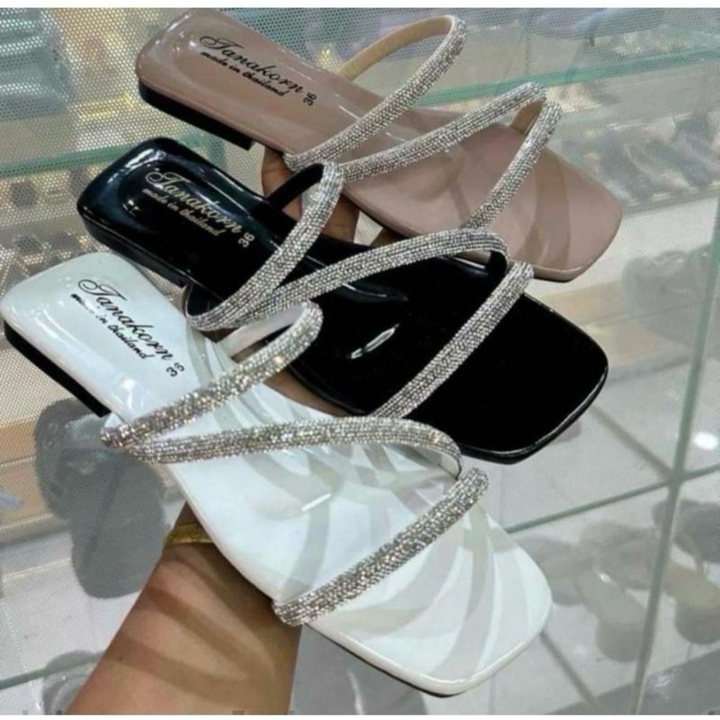 T&TSRORE/READY STOCK/NEWS ARRIVED Z MODELS ALL MATCH RHINESTONE FLAST SANDAL WITH PLUE SIZE KASUT PEREMPUAN G113