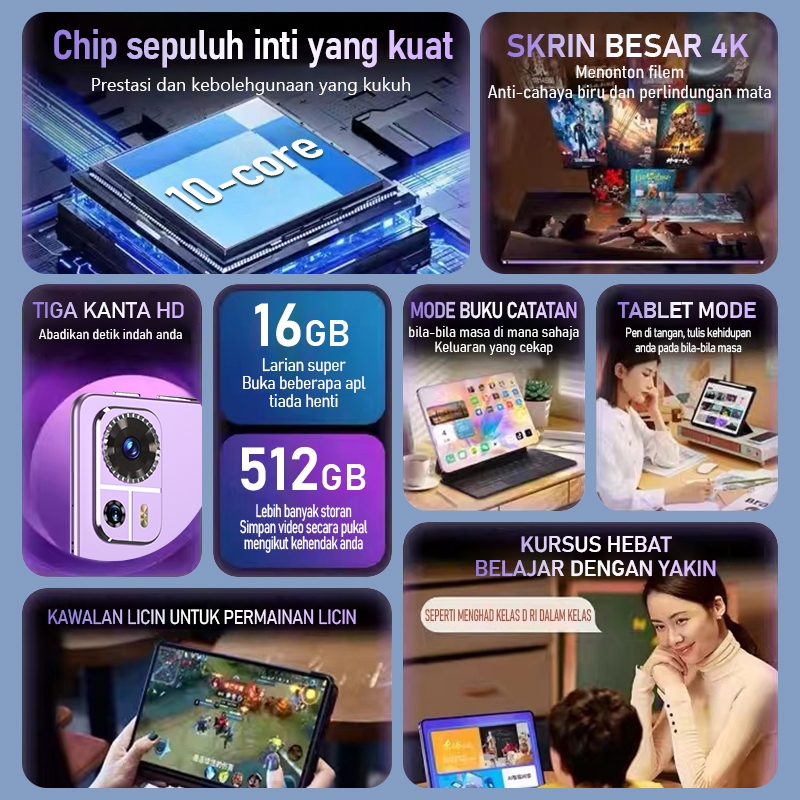 Tablet Galaxy Tab M9pro Slim Eye Protection Screen Tablet PC 10.8 Inch 16GB+1024GB Smart Android Tablet Mugla Support SIM Card Learning Tablet Free Pad touch screen pen + 8 gifts