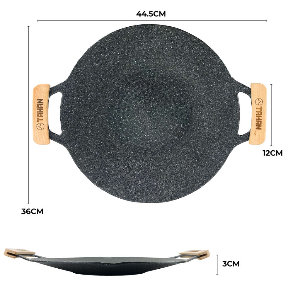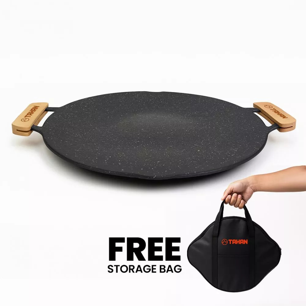 TAHAN 36cm Non-Stick Grill Pan Maifan Stone Coating | Outdoor Camping BBQ Frying Pan with Carry Bag