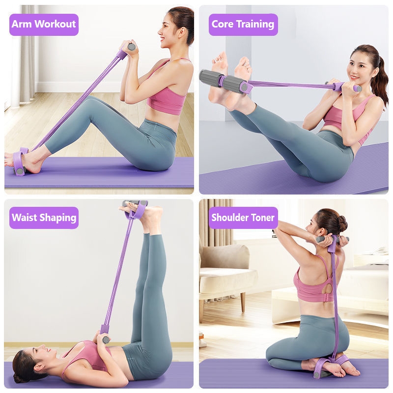 Tali Senaman Elastik 6 Tiub dengan Pemijak 6 Tube Pedal Rope Resistance Band Fitness Yoga Elastic Pull Rope