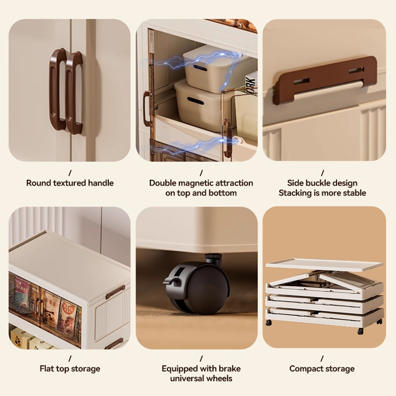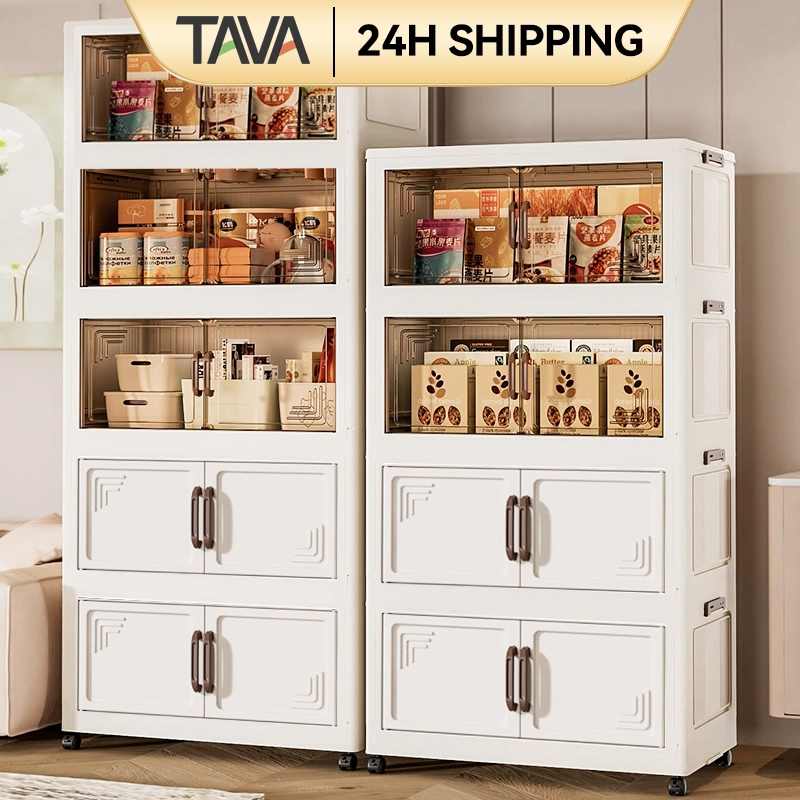TAVA 55cm 4/5/6Layer Gap Storage Organizer Magnetic Door Foldable Storage Cabinet Double Doors Storage Box Stackable