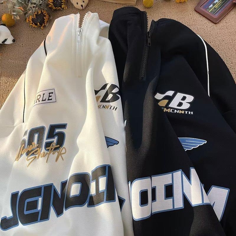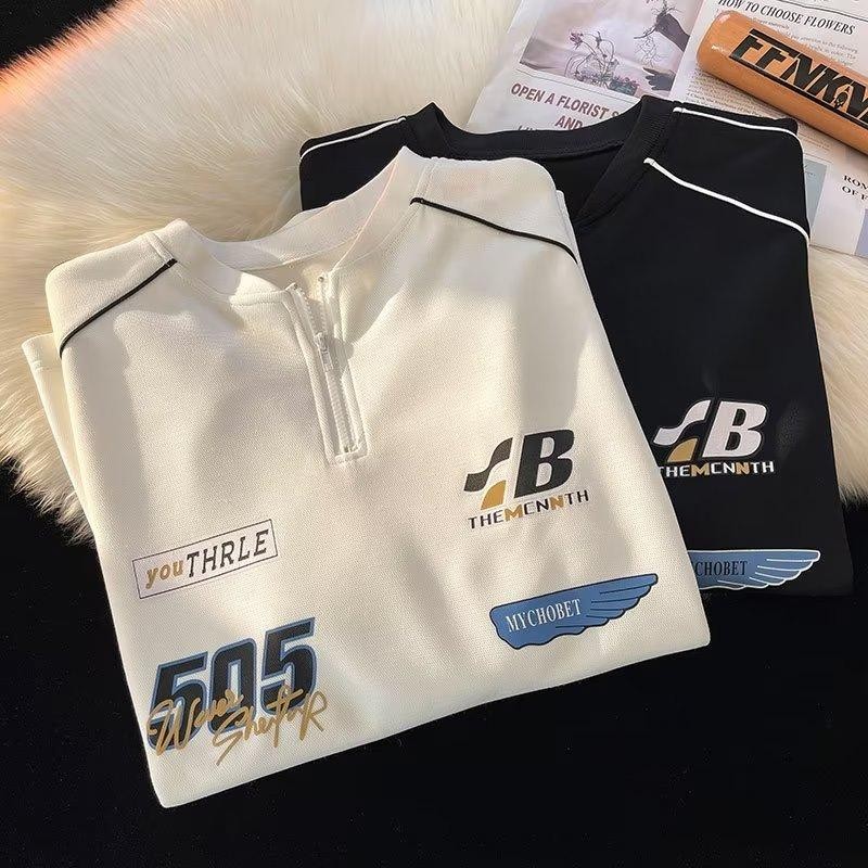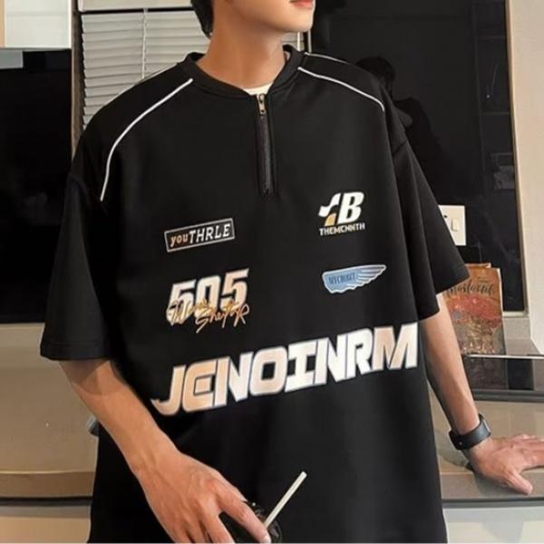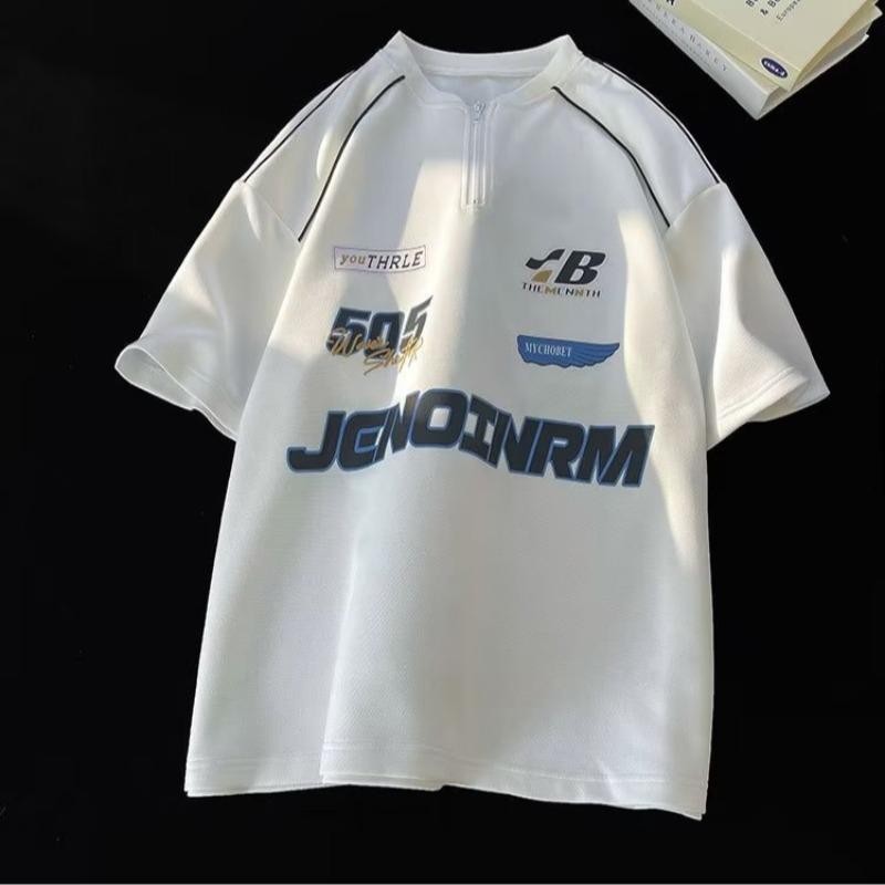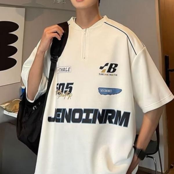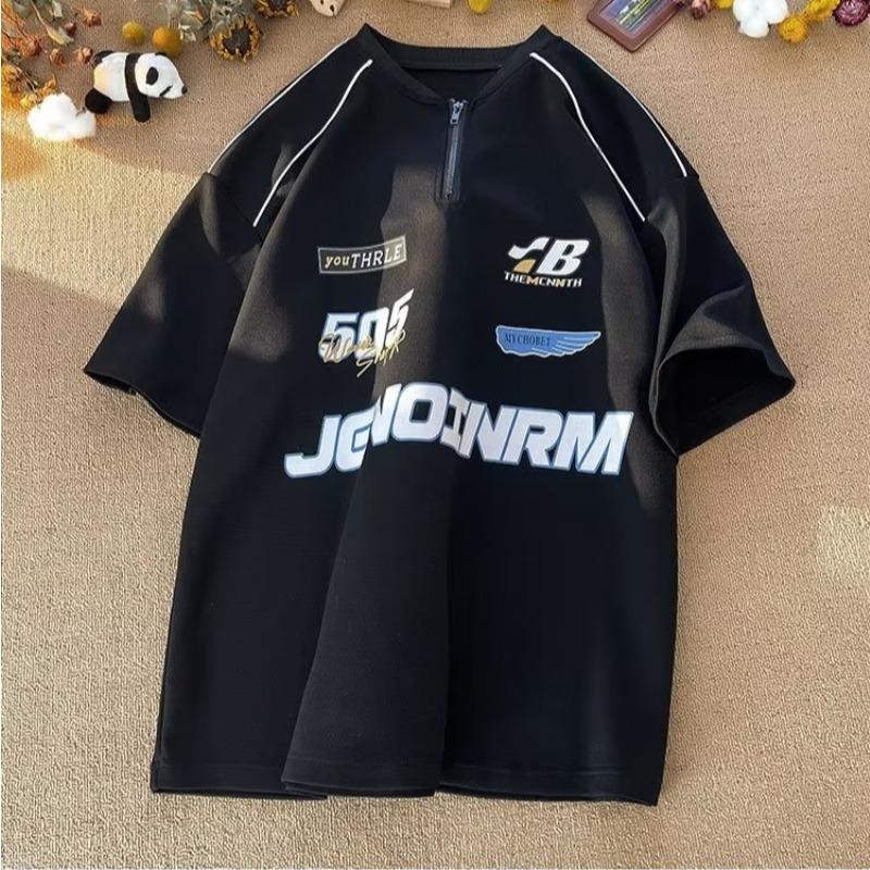 【Teen Style】Korean fashion oversized motorcycle zipper T-shirt men and women mens summer all-match letter printed loose round neck short sleeve t-shirt