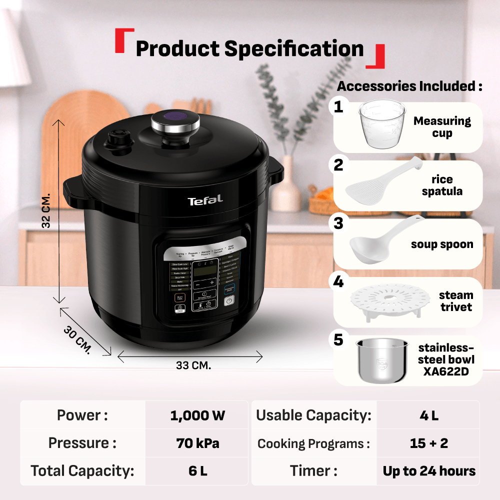 Tefal Home Chef Smart Multicooker (6L) [Free SS Inner Pot] CY601 + XA622D