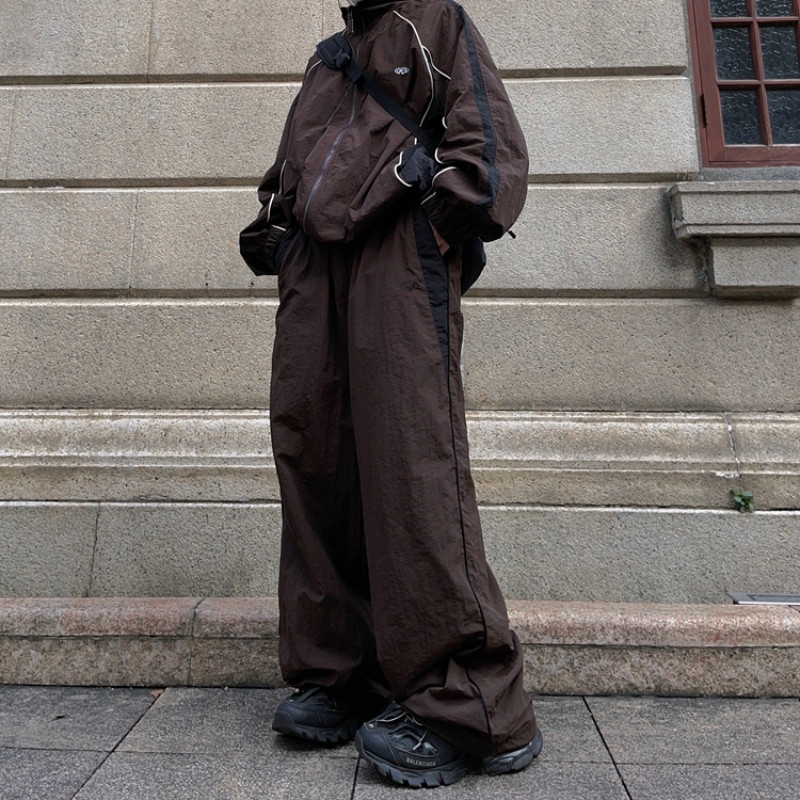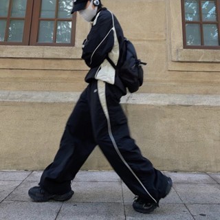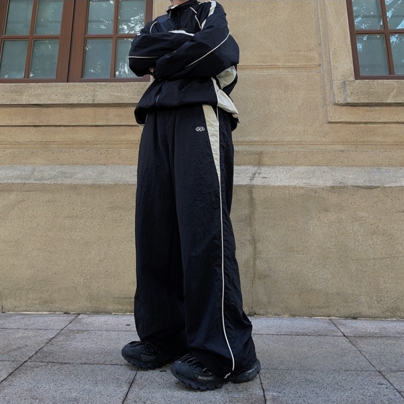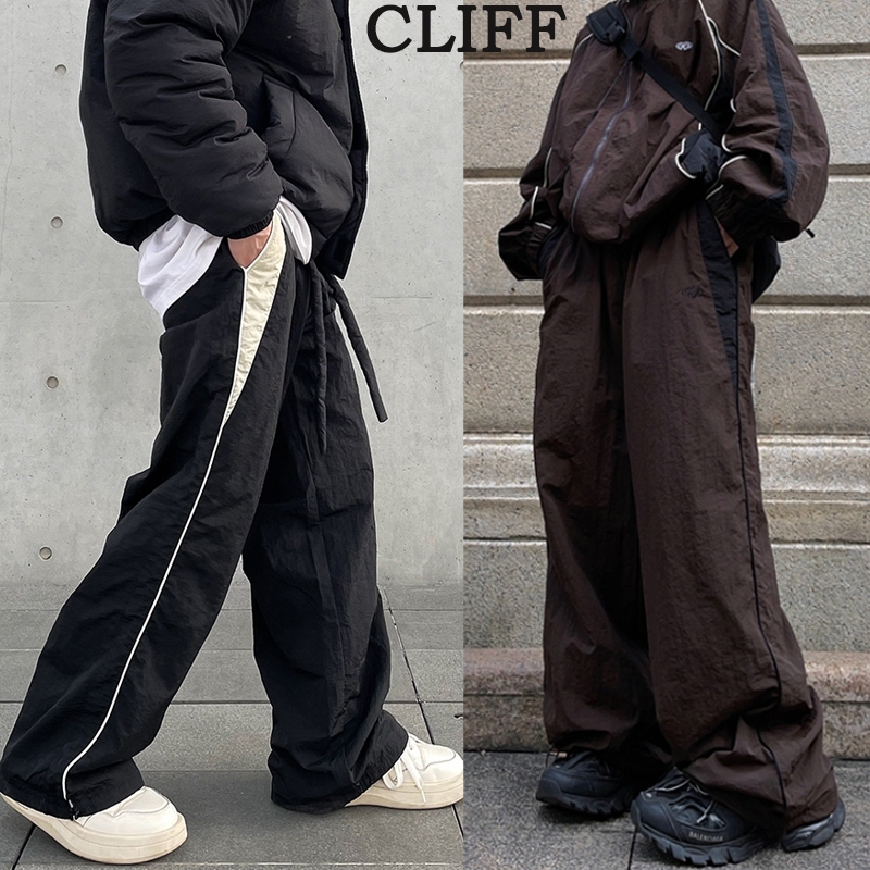【Tempat Malaysia】CLIFF men 2025 new american retro pants Patchwork Striped Sweatpants Loose Sporty Wide Leg Baggy