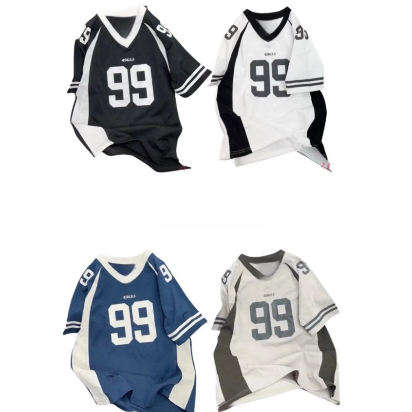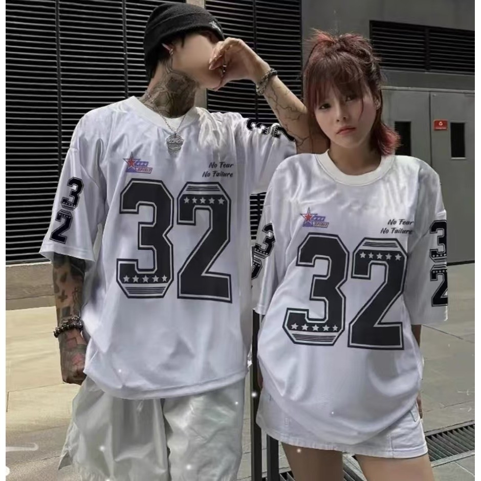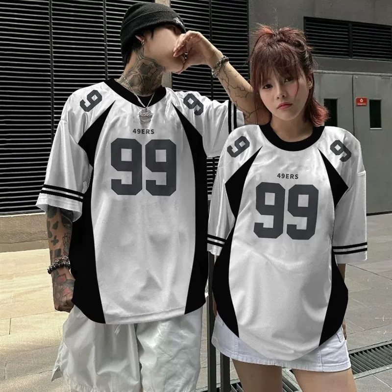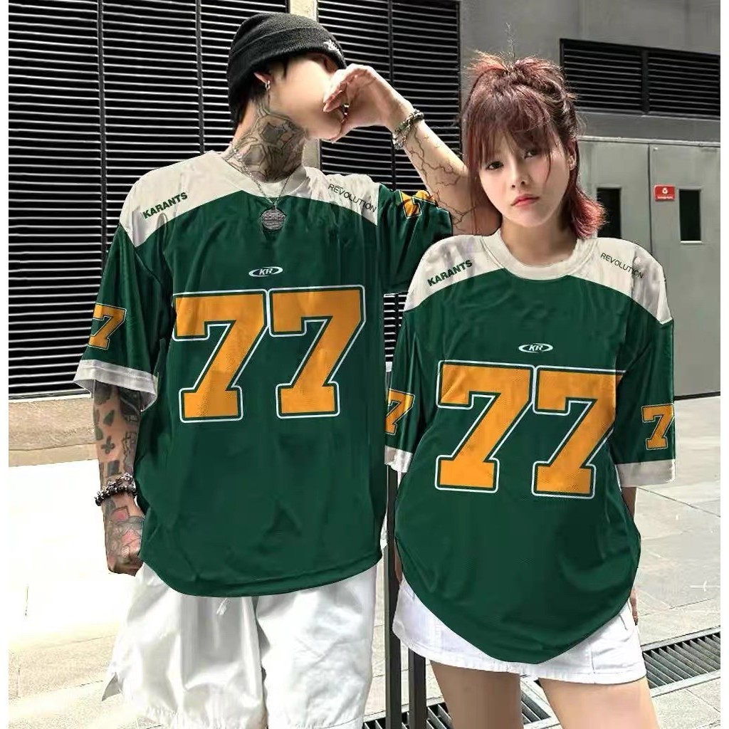 【Tempat Malaysia】CLIFF men Rugby Jersey Retro Sports Jersey Hip Hop Printed Short Sleeve Couples Round Neck T-Shirt