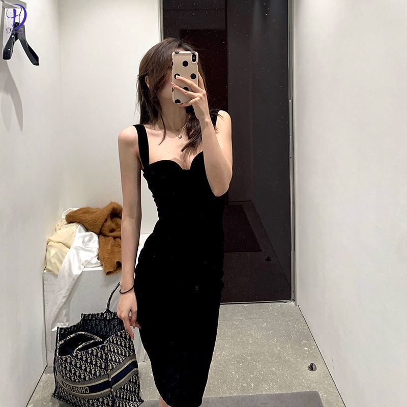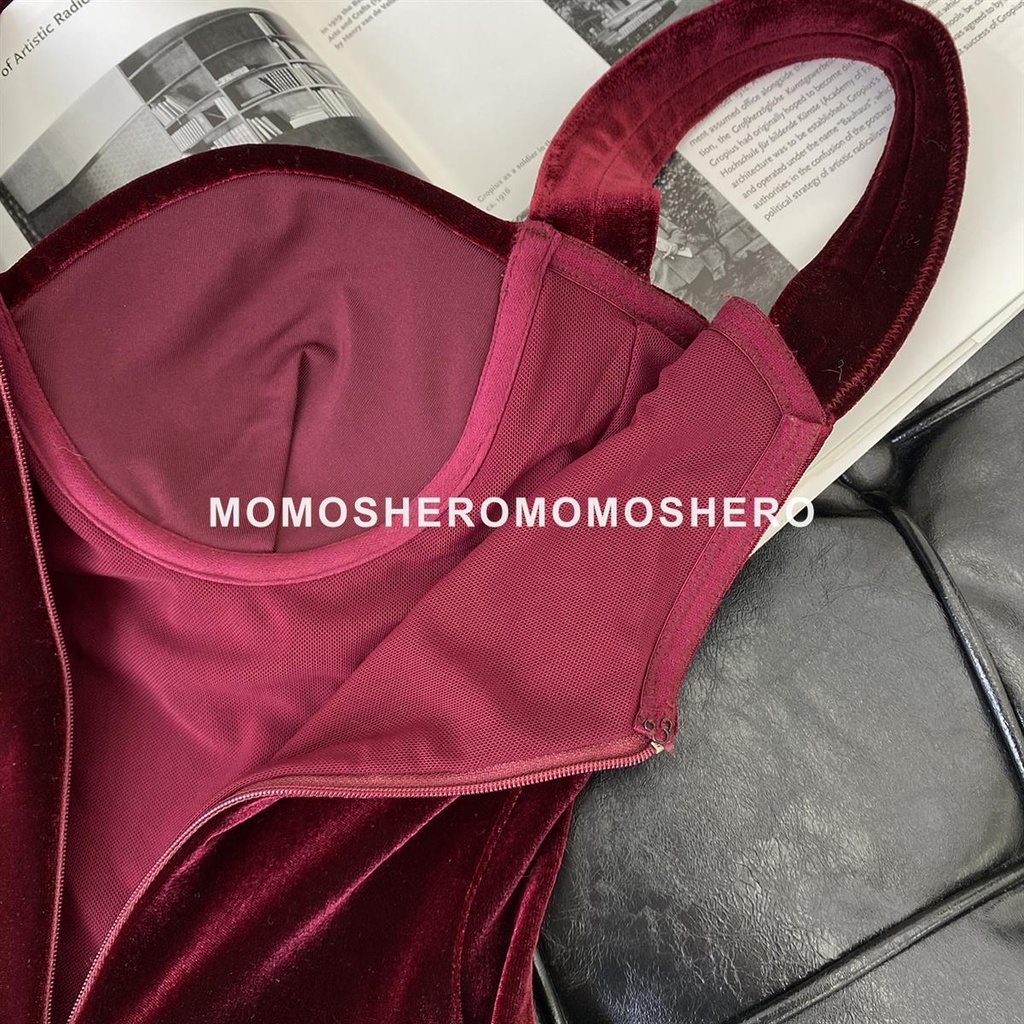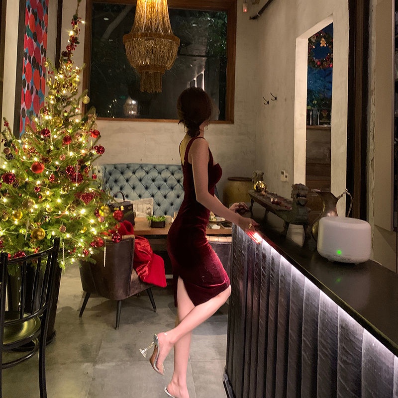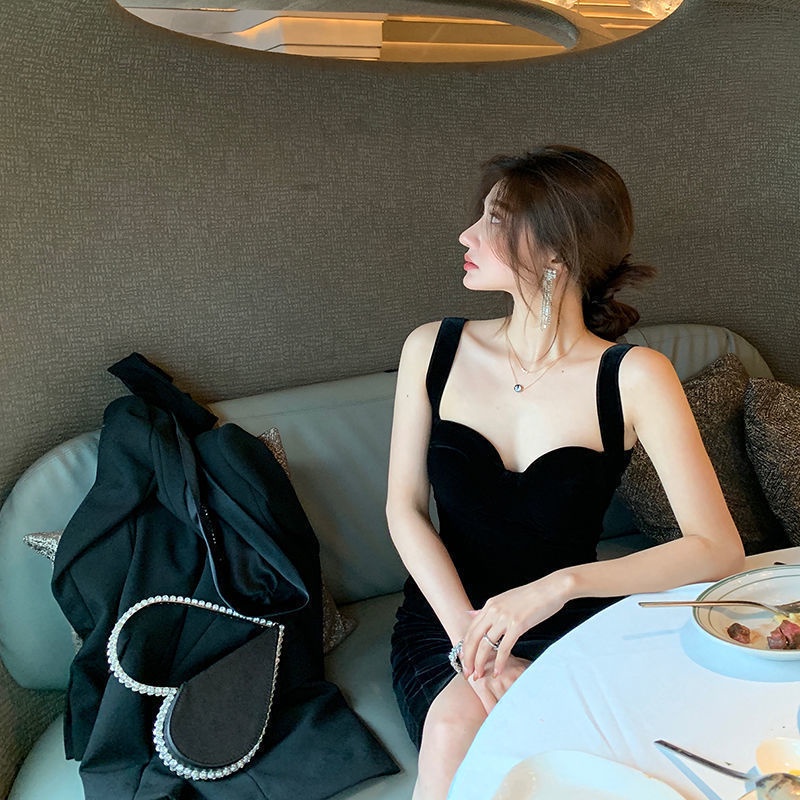 Temperament Retro Slim Party Dress Velvet Rose Sling Halter Dress