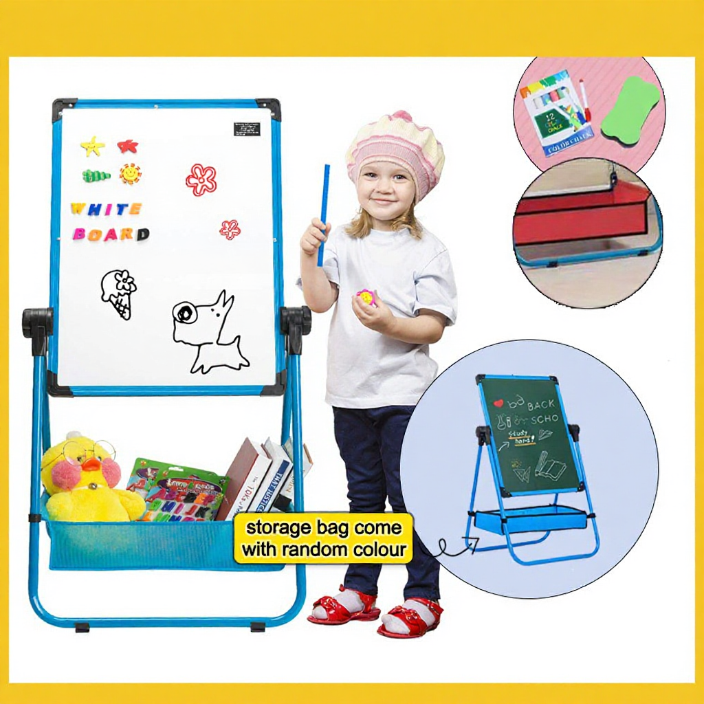 TENSO T017 Kids Drawing Board Whiteboard & Blackboard Double Sided Stand 2 in 1 Toys