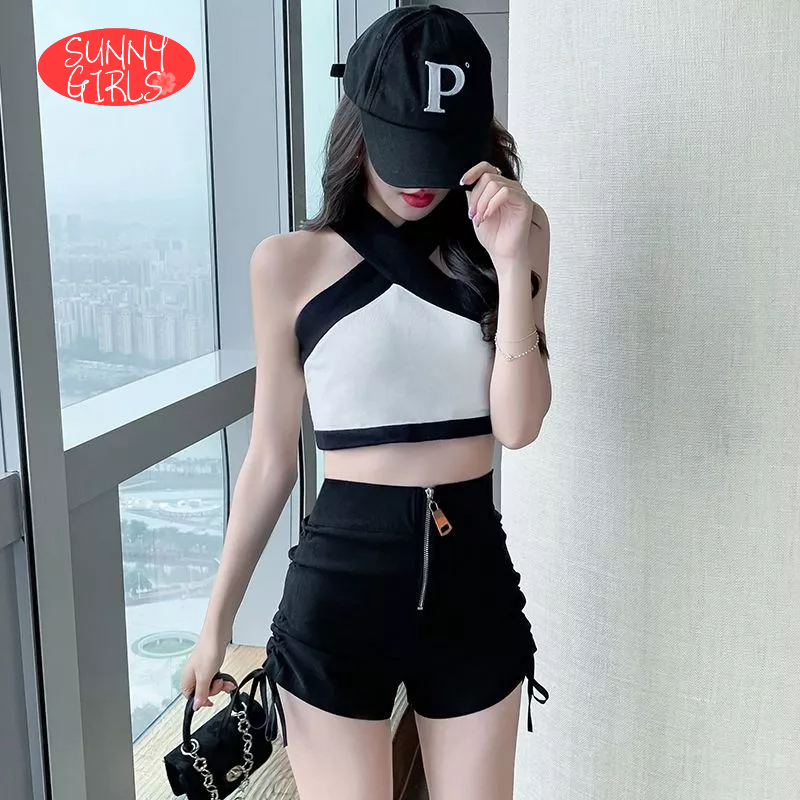 The newly upgraded Korean version of the women's summer design features drawstring pleats, high-waisted zippers, slimmin