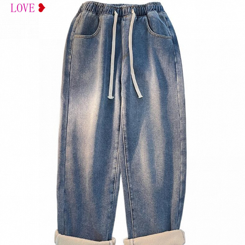 Thickened Straight-Leg Jeans | Fleece-Lined & Elastic Waist | Autumn/Winter