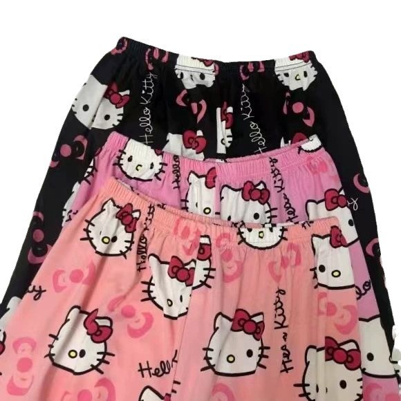 Thin Sanrio Hello Kitty Pajamas Long Pants Spider-man Sanrio Hello Kitty Cotton Casual Pajamas Pants Kawaii Black Pink Anime Home Leisure Pants Sleep Pants
