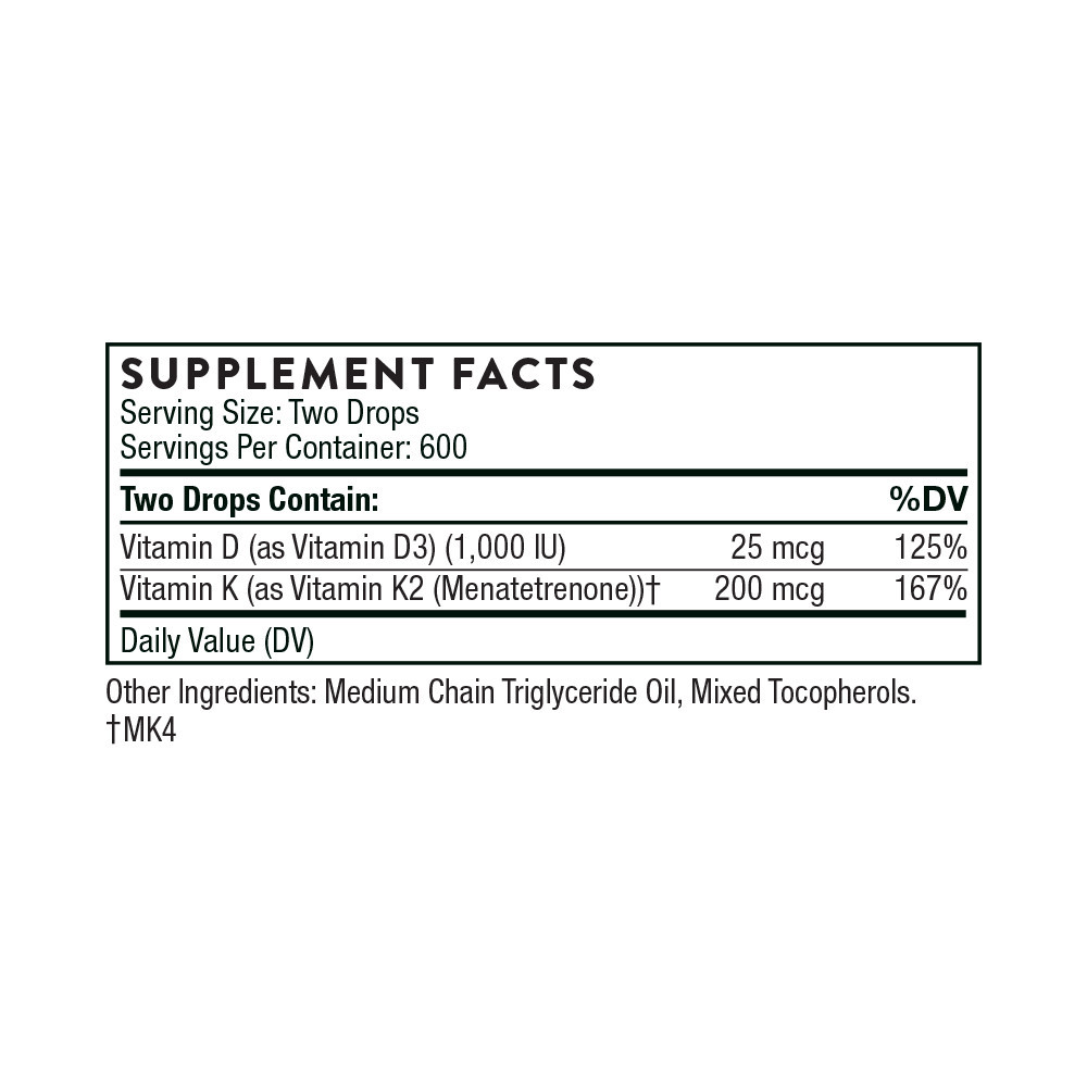 Thorne Vitamin D + K2 Liquid 1200 Drops