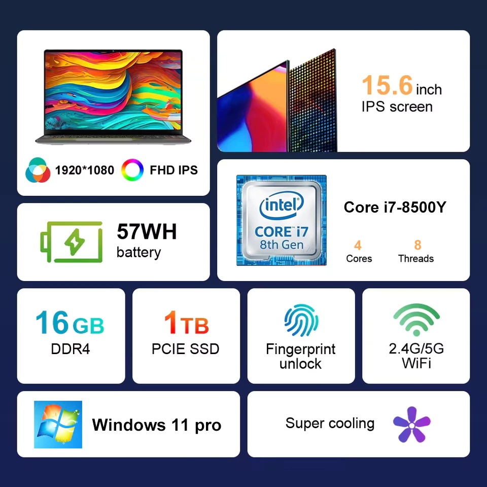 【Three year warranty】Ultra thin business laptop | Intel core i7 | 15.6" FHD | Fingerprint unlock | 16GB RAM |1TB SSD | Windows 11 |Office study laptop