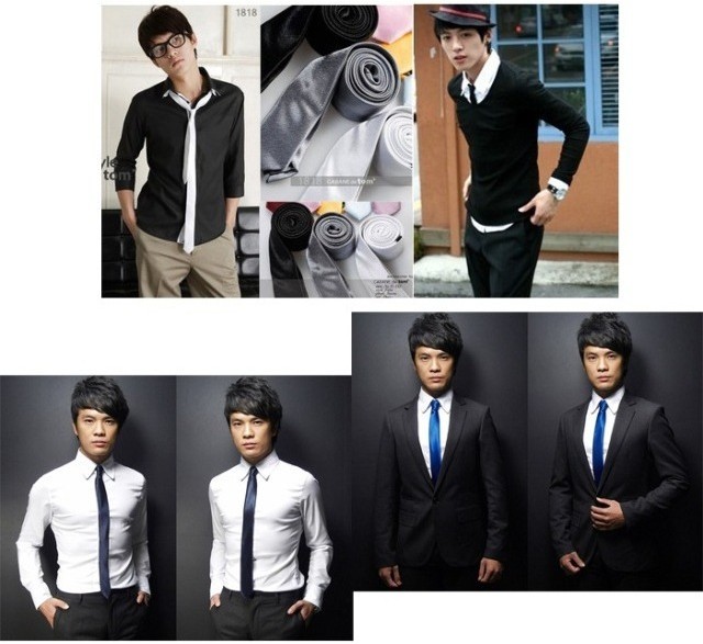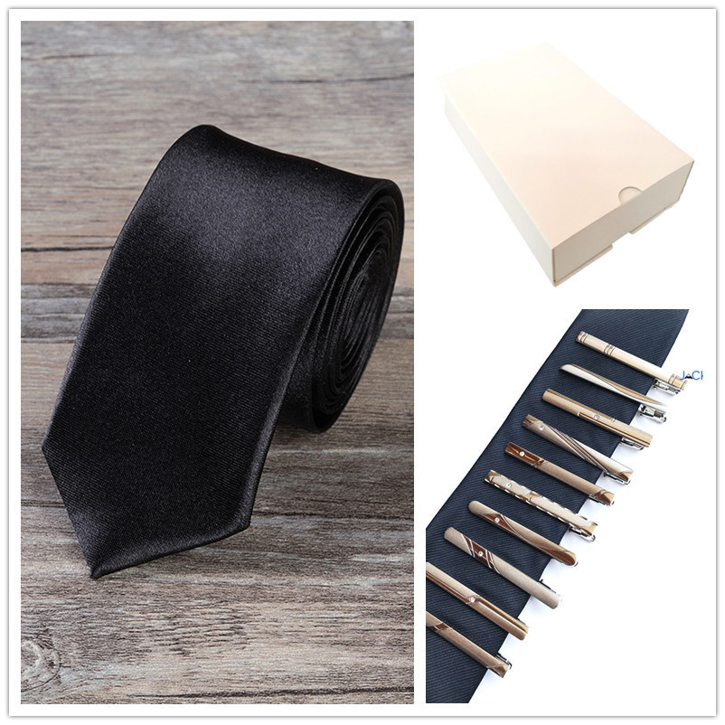 [Tie Clip+Gift Box] Men's 5cm Slim Skinny Necktie Ironless Solid Plain Colour Korean Casual Business Formal Neck Tie 655