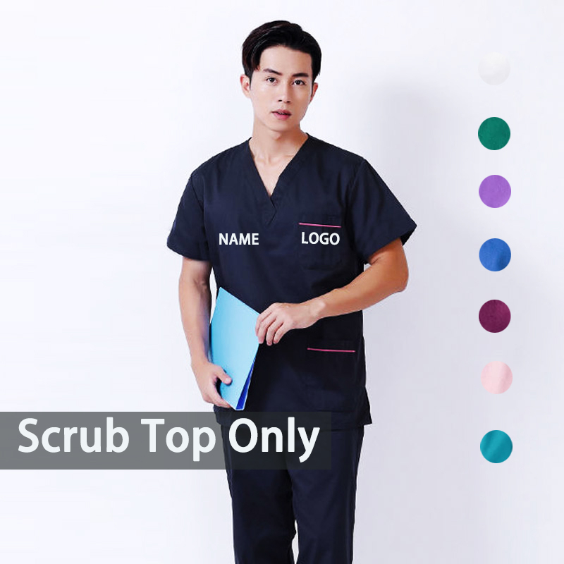 [TOP Only] Free Name Scrub Suit Short Sleeve Clinic Dental Spa Beauty Medical Nurse Suit Hospital Uniform Surgical Clothes