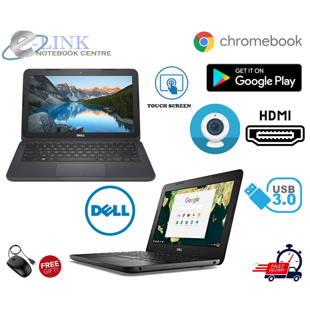 ( Touch Screen Chromebook Google Play Store) DELL 3180 / HP 11 G5 / LENOVO N22 / DELL 3100 / CELERON / 4GB / 16GB