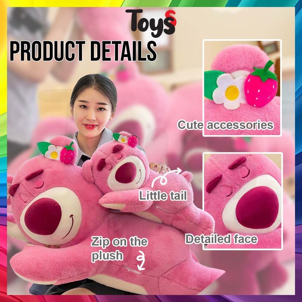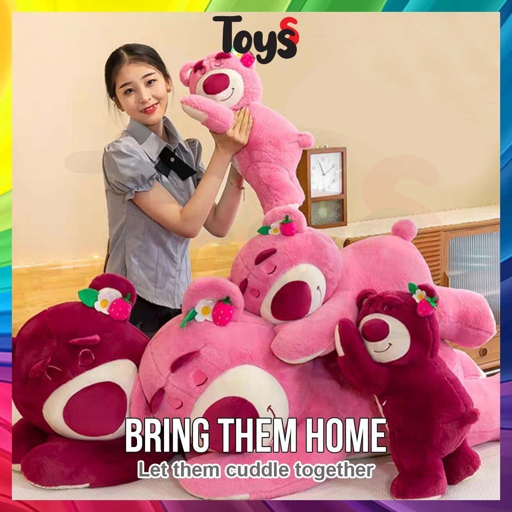 ?Toyss Laying Lotso Bear Strawberry Bear Patung Lotso Besar Bear Comel Boneka Lotso Patung Bear Lotso Toy Story 娃娃草莓熊玩偶