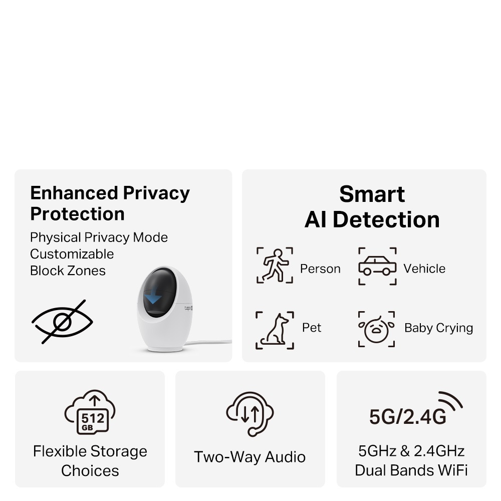 TP-Link Tapo C260 4K 8MP AI Smart CCTV | Pan Tilt 360° | Dual-Band WiFi 2.4GHz/5GHz | Motion Detect