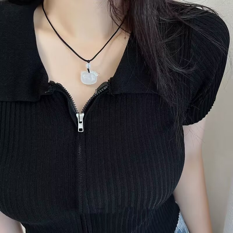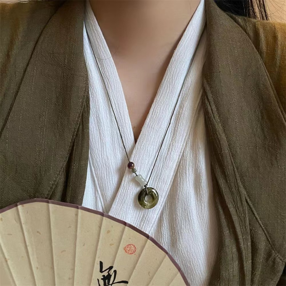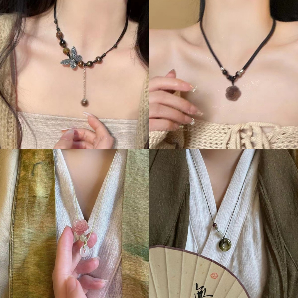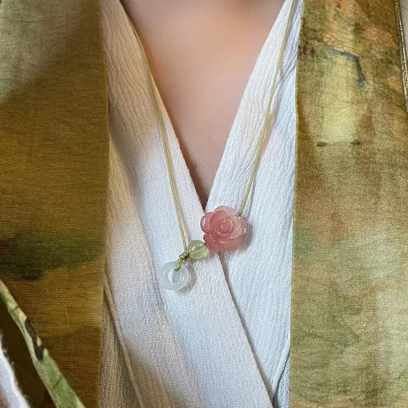 Trendy New Chinese Style Camellia Pendant Woven Necklace Peace Buckle Clavicle Chain Necklace for Stylish Women