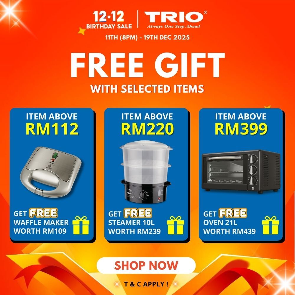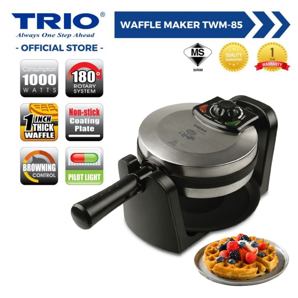 Trio Waffle Maker 180° Rotary System With Non-Stick Coating Plate | Easy Flip | Crispy | 1 Inch Thick Waffle | Breakfast