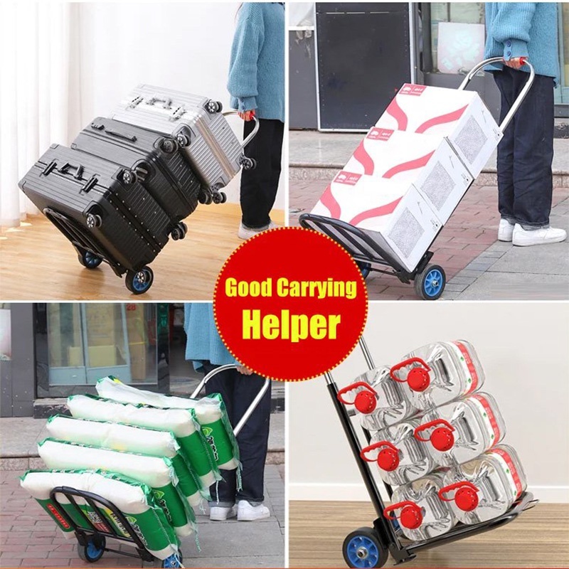 Troli Boleh Lipat Foldable Trolley Heavy Duty Extendable Hand Truck Multipurpose Silent Rubber Wheel Trolley