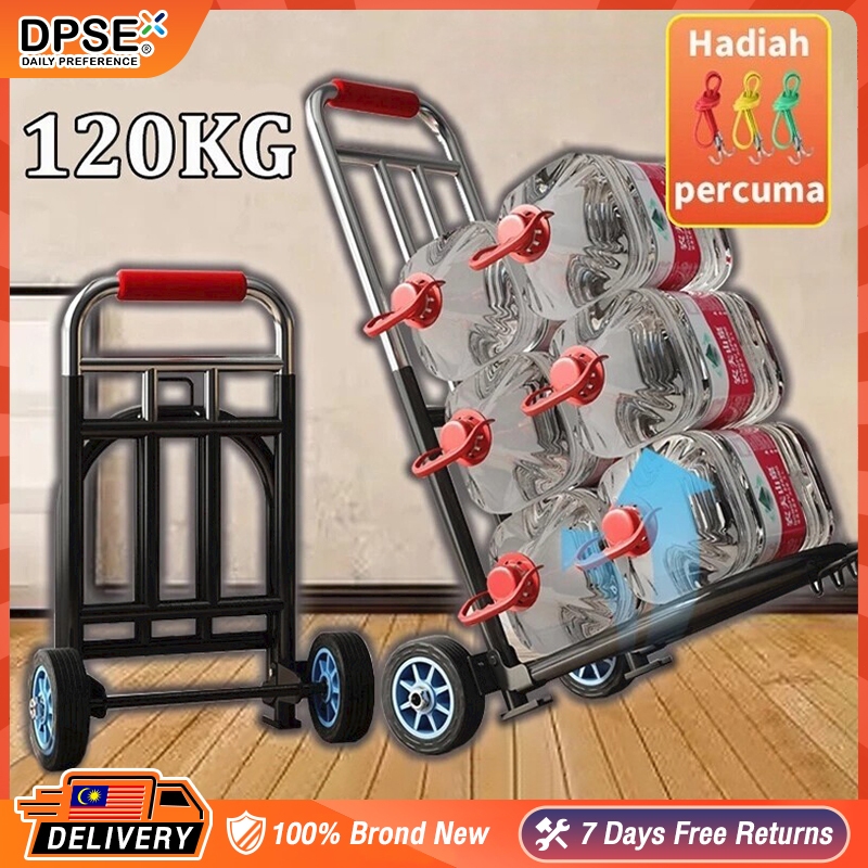 Trolley Heavy Duty MAX 300KG Troli Barang Portable Extendable Hand Truck Troli Multipurpose Silent Rubber 2/6 Wheel