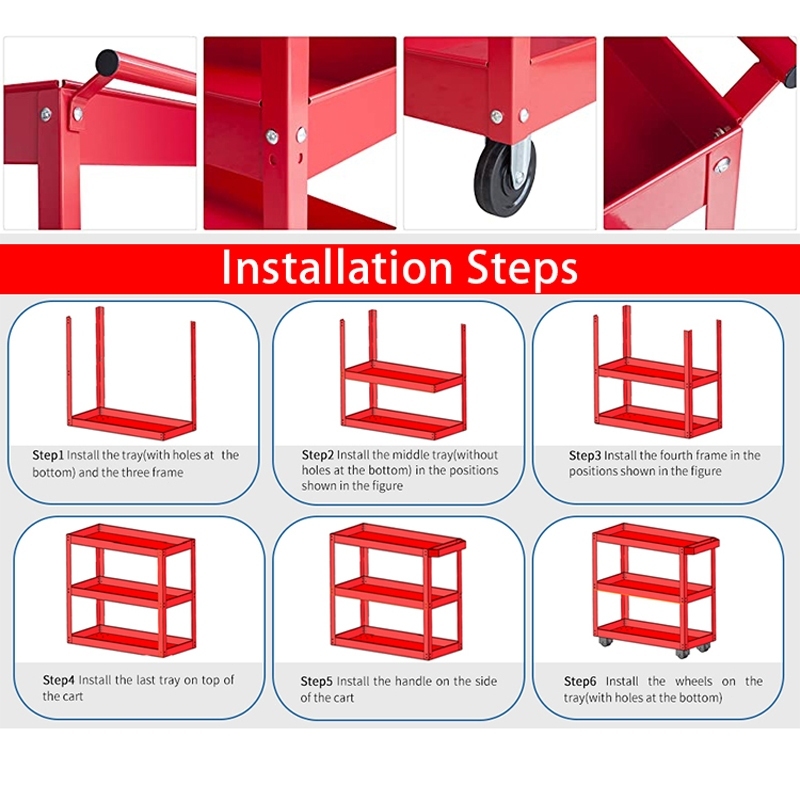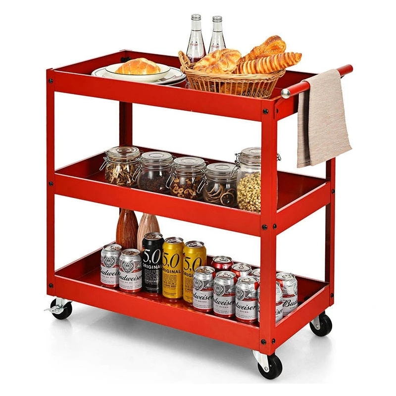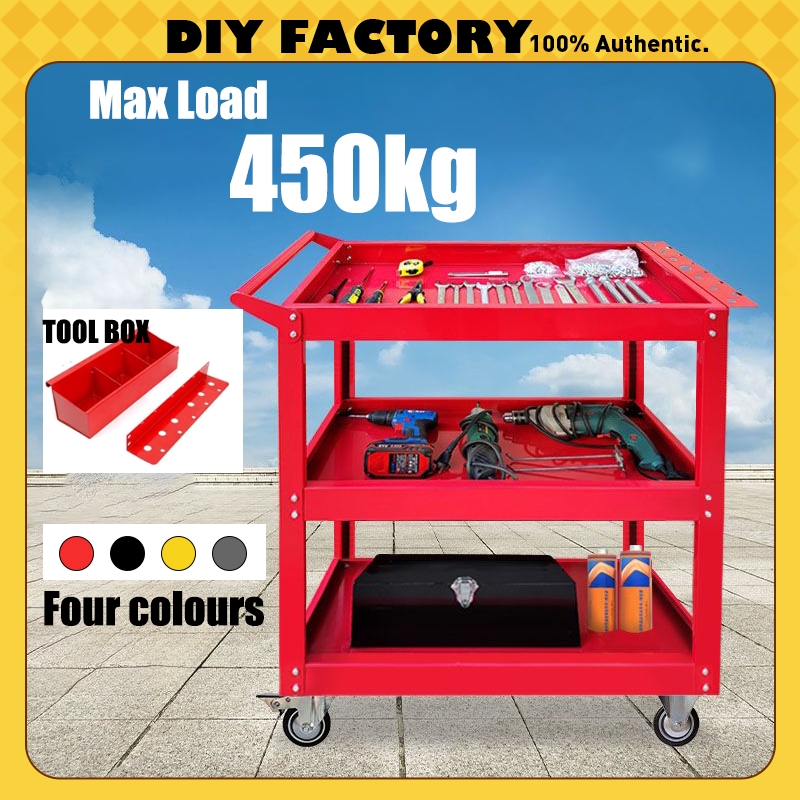 Trolley Heavy Duty Metal Steel Tool Cart 3 Layers Service Cart Trolley Barang Garaj Bengkel Tools Shelf Storage Toolcart